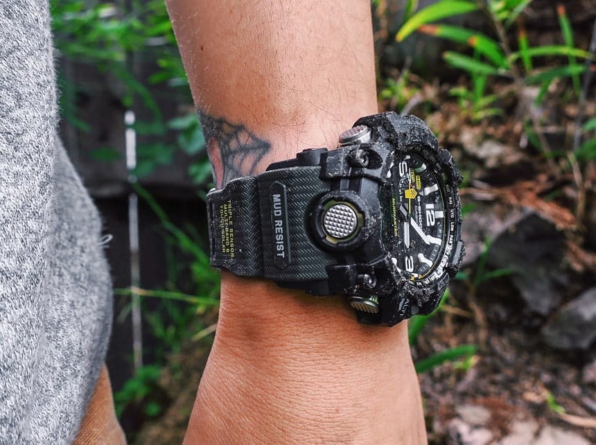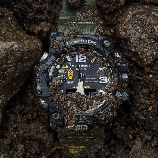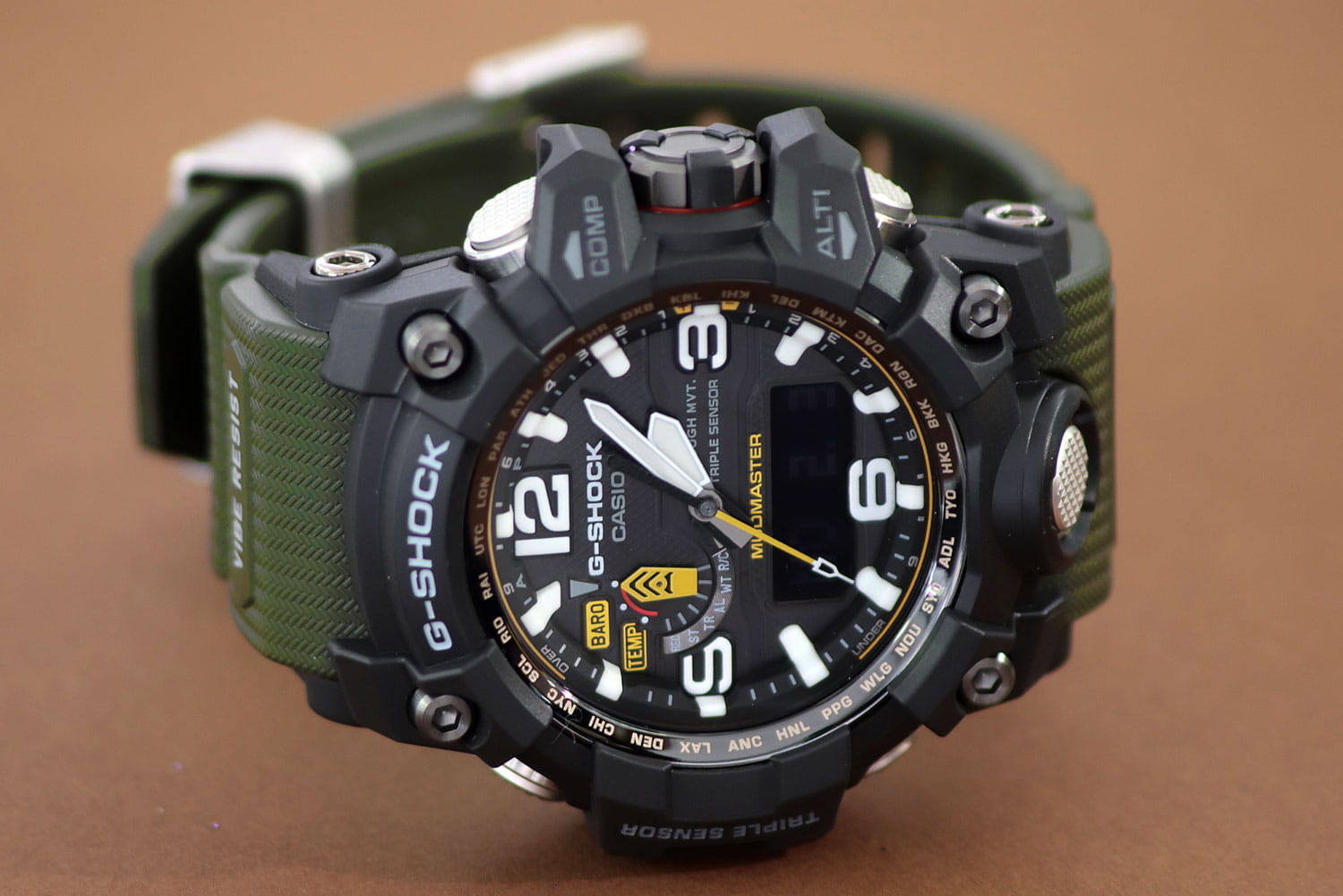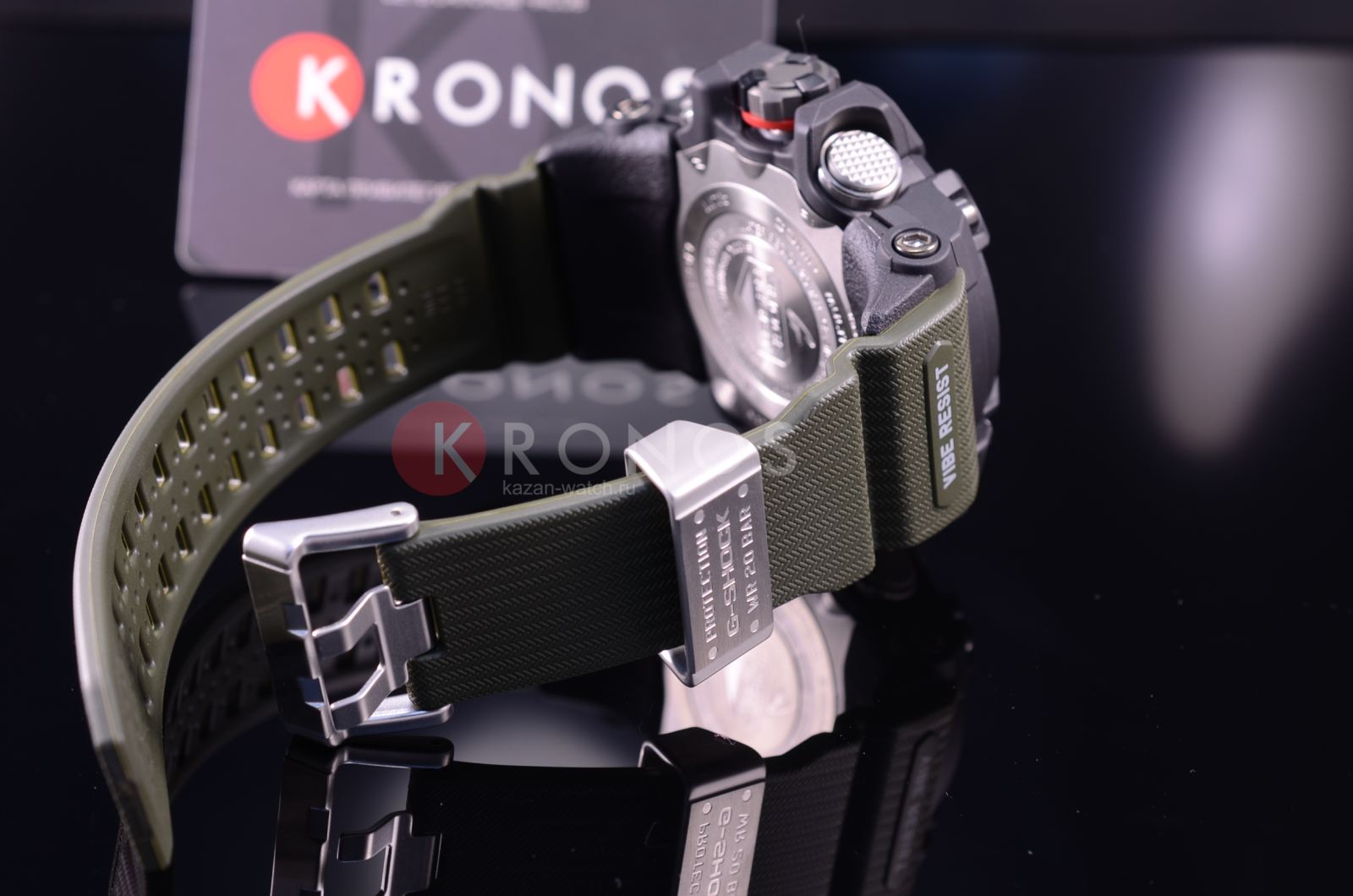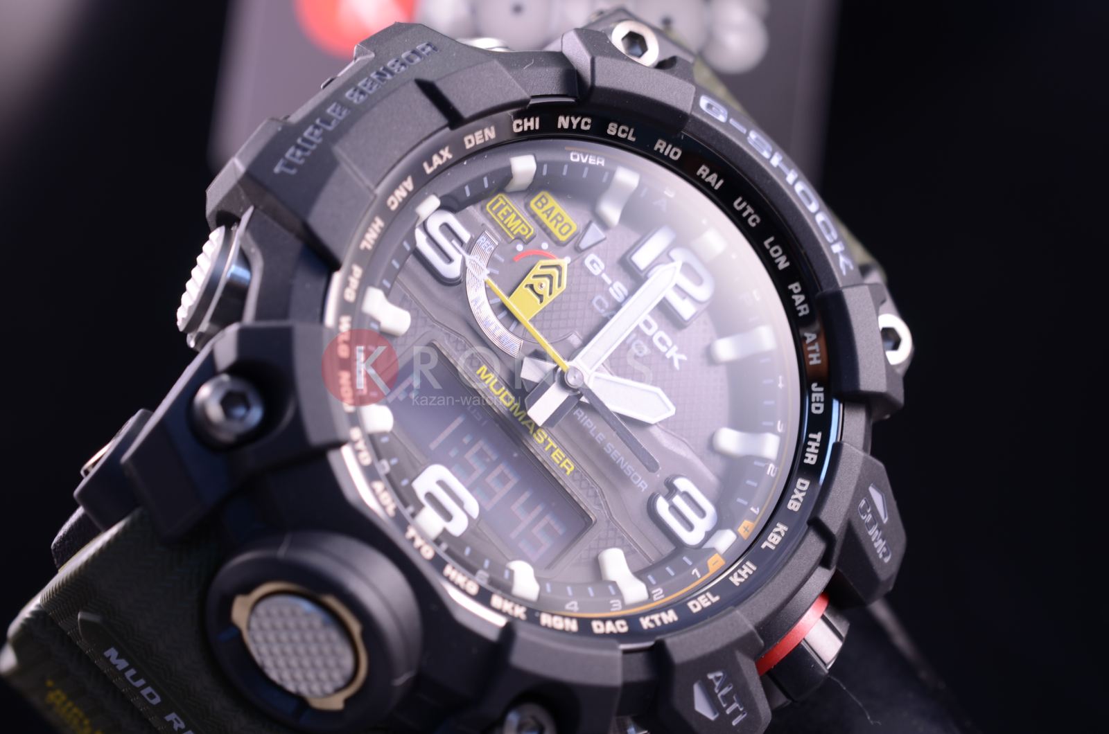 Японские мужские часы из коллекции G-Shock помогут завершить повседневный образ и порадуют владельца широким функционалом. Наручные часы серии Mudmaster привлекают брутальным дизайном с внушительным ударопрочным корпусомУдаропрочный корпусМеханизм заключён в корпус, выполненный из современных материалов, устойчивых к ударам, механическим повреждениям и падению с высоты: инновационный пластик, карбон, нержавеющая сталь, титан.. Они выполнены в стиле милитари, сочетая в себе узнаваемое оформление, прочные материалы и современные технологии. Привлекательно смотрится полимерный ремешок цвета хаки, обеспечивающий комфортное ношение. Циферблат защищает сапфировое стеклоСапфировое стеклоПрочный и надёжный материал из кристалла сапфира синтетического происхождения, характеризующийся особой твёрдостью и устойчивостью к царапинам и повреждениям. с антибликовым покрытием, устойчивое к возникновению царапин на поверхности. Корпус из высококачественного пластика. Двойная электролюминесцентная подсветкаЭлектролюминесцентная подсветкаЭлектролюминесцентная панель устанавливается под ЖК-экраном часов, при нажатии кнопки электричество преобразуется в свет за счёт подачи напряжения на атомы фосфора, такой тип подсветки позволяет освещать весь циферблат.. Питание от солнечной батареи Tough SolarTough SolarТехнология основана на подзарядке аккумулятора от источника солнечного света, специальная панель улавливает солнечные лучи и преобразует их в энергию для работы часов. Достаточно пары минут нахождения на солнце для функционирования часов в течении суток.. Индикатор заряда батарейки. Устойчивость к грязи и пыли. Включение и выключение звука кнопок. Функции: цифровой компас, барометр, термометр от -10° С до +60°С, UTCUTCВсемирное кординационное время, не имеющее привязки к географическому положению Гринвича, основывается на атомном отсчёте времени. Регулировка времени осуществляется более точно, чем устаревшее GMT.