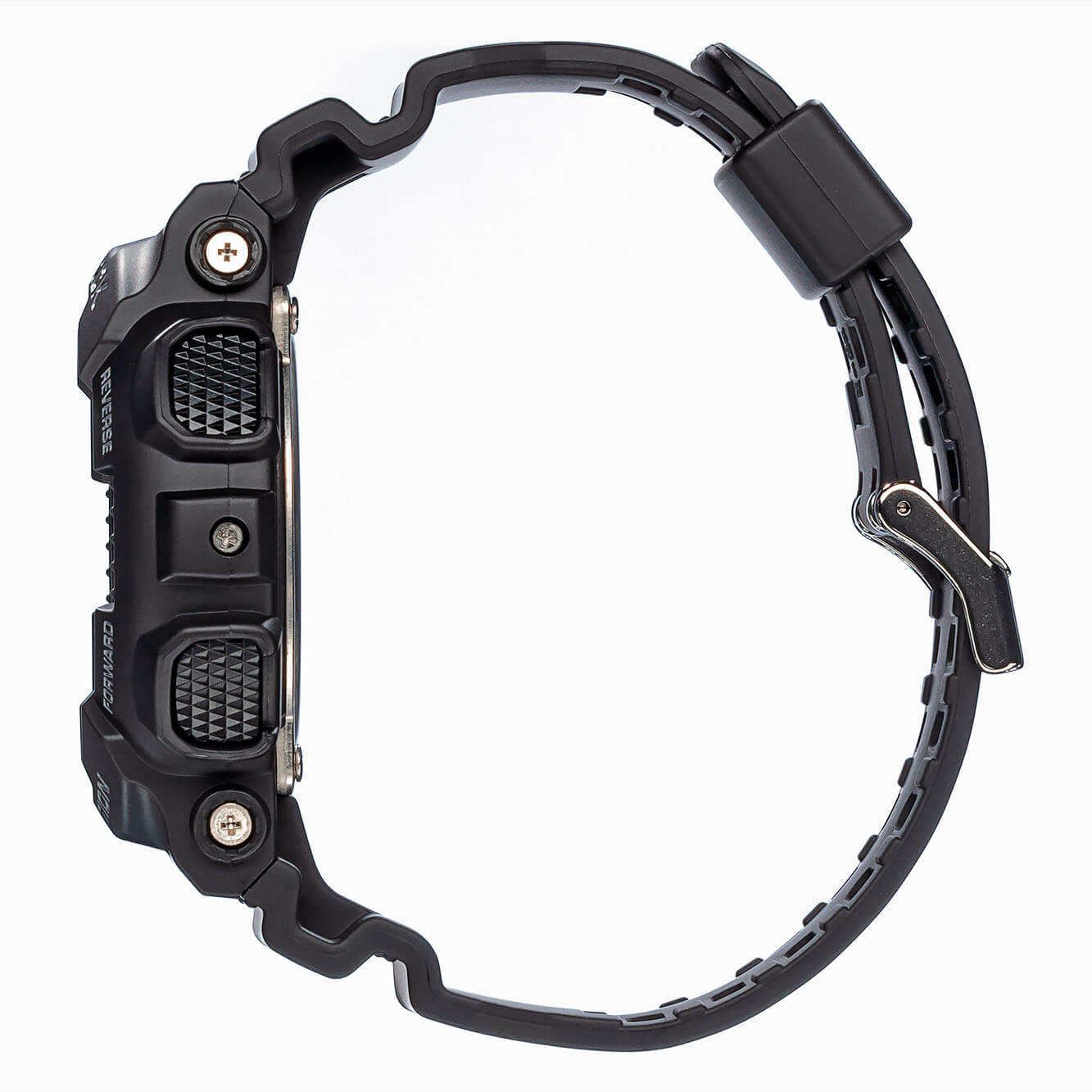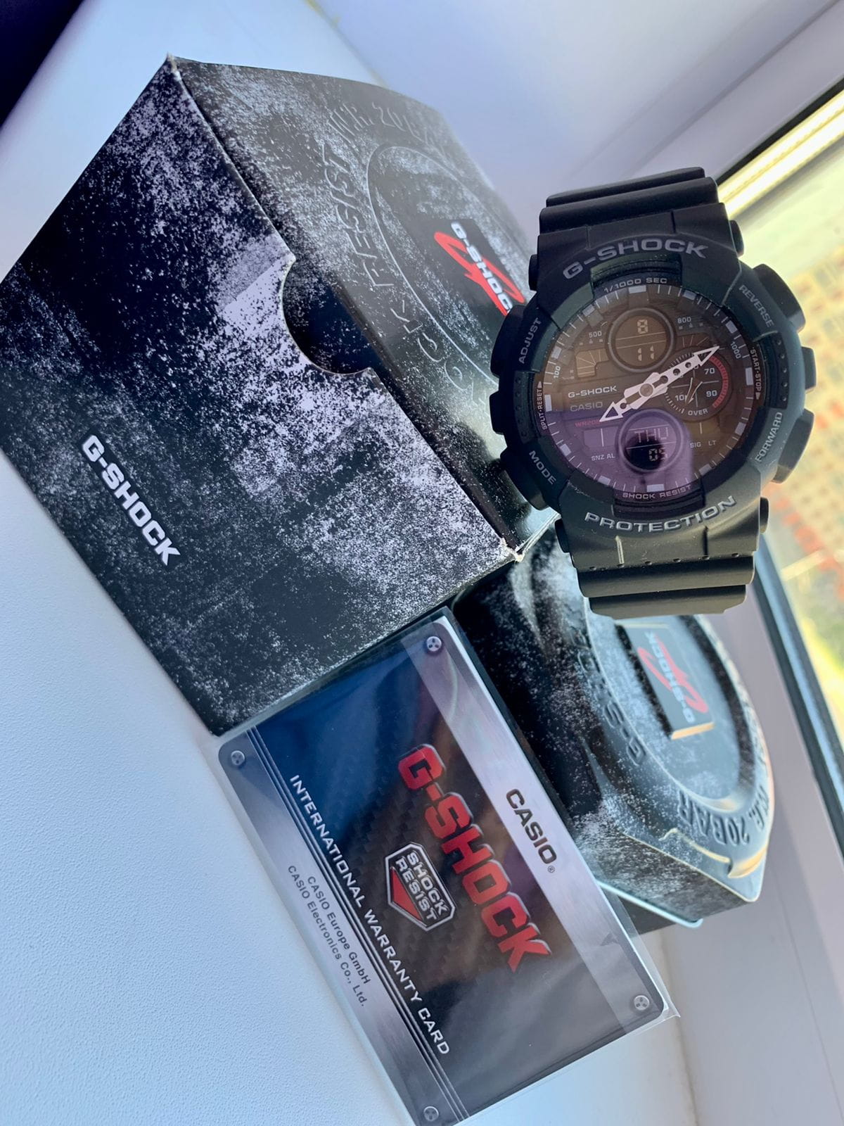 Форма ударопрочного корпусаУдаропрочный корпусМеханизм заключён в корпус, выполненный из современных материалов, устойчивых к ударам, механическим повреждениям и падению с высоты: инновационный пластик, карбон, нержавеющая сталь, титан. унаследована от моделей линейки GA-100, в обновленном варианте предстал циферблат и оригинальные стрелки. Наручные часы в тёмной расцветке и красными элементами станут прекрасным дополнением к повседневному образу, брендовая модель не имеет ни одной лишней детали. Аксессуар изготовлен из полимерного материала, благодаря его устойчивости к ударам и повреждениям часы получили максимальную надёжность. Японский кварцевый калибр с точностью хода +/- 15 секунд в месяц работает от батарейки, рассчитанной на 2 года. Автоматическая светодиодная подсветкаСветодиодная подсветкаСветодиодная или LED-подсветка обеспечивает появление яркого холодного свечения за счёт LED-элементов - маленьких лампочек. Они потребляют минимальное количество энергии, чаще всего можно встретить 1 светодиод, в нижней части циферблата.. Устойчивость к магнитным полям. Минеральное стекло. Класс водозащиты WR 200. Расчёт средней скорости пути, хронографХронографФункция позволяет измерять отрезки времени с особой точностью: часы, минуты, секунды. Верным признаком хронографа является наличие на циферблате 3 дополнительных окошек-счётчиков., автоматический календарь, секундомер, мировое времяМировое время Полезное часовое усложнение, отображающее время в основных городах и известных областях по всему миру, оно связано с часовыми поясами, удобно для путешественников и бизнесменов. , таймер, будильник. Габариты: 55 x 51,2 x 16,9 мм.
