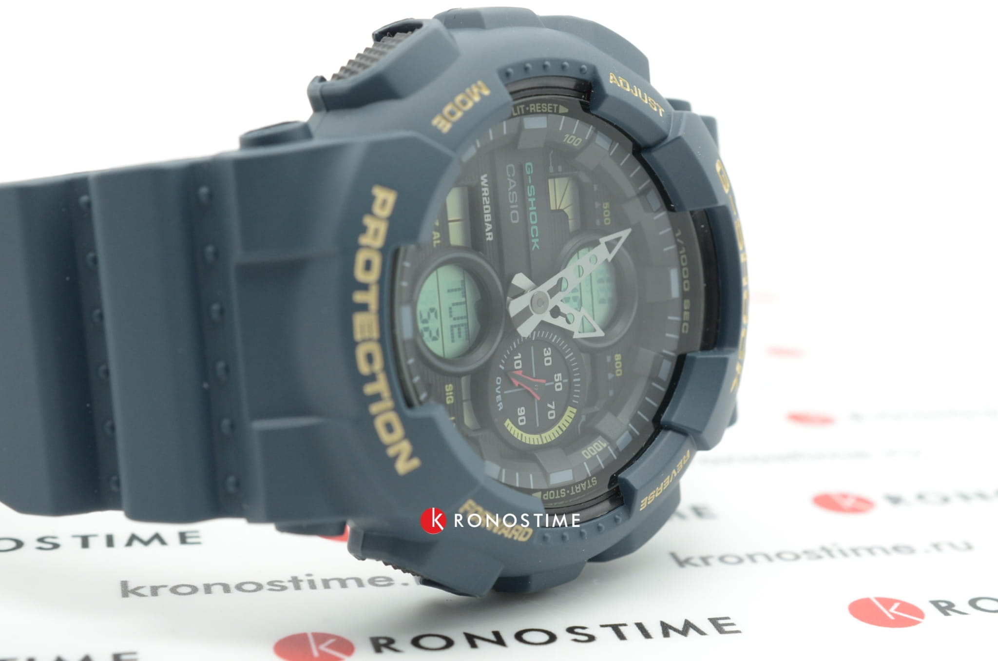 Форма ударопрочного корпусаУдаропрочный корпусМеханизм заключён в корпус, выполненный из современных материалов, устойчивых к ударам, механическим повреждениям и падению с высоты: инновационный пластик, карбон, нержавеющая сталь, титан. унаследована от моделей линейки GA-100, в обновленном варианте предстал циферблат и оригинальные стрелки. Наручные часы в тёмно-синей расцветке и элементами песочного цвета станут прекрасным дополнением к повседневному образу, брендовая модель не имеет ни одной лишней детали. Аксессуар изготовлен из полимерного материала, благодаря его устойчивости к ударам и повреждениям часы получили максимальную надёжность. Японский кварцевый калибр с точностью хода +/- 15 секунд в месяц работает от батарейки, рассчитанной на 2 года. Автоматическая светодиодная подсветкаСветодиодная подсветкаСветодиодная или LED-подсветка обеспечивает появление яркого холодного свечения за счёт LED-элементов - маленьких лампочек. Они потребляют минимальное количество энергии, чаще всего можно встретить 1 светодиод, в нижней части циферблата.. Устойчивость к магнитным полям. Минеральное стекло. Класс водозащиты WR 200. Расчёт средней скорости пути, хронографХронографФункция позволяет измерять отрезки времени с особой точностью: часы, минуты, секунды. Верным признаком хронографа является наличие на циферблате 3 дополнительных окошек-счётчиков., автоматический календарь, секундомер, мировое времяМировое время Полезное часовое усложнение, отображающее время в основных городах и известных областях по всему миру, оно связано с часовыми поясами, удобно для путешественников и бизнесменов. , таймер, будильник. Габариты: 55 x 51,2 x 16,9 мм.