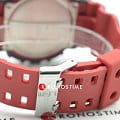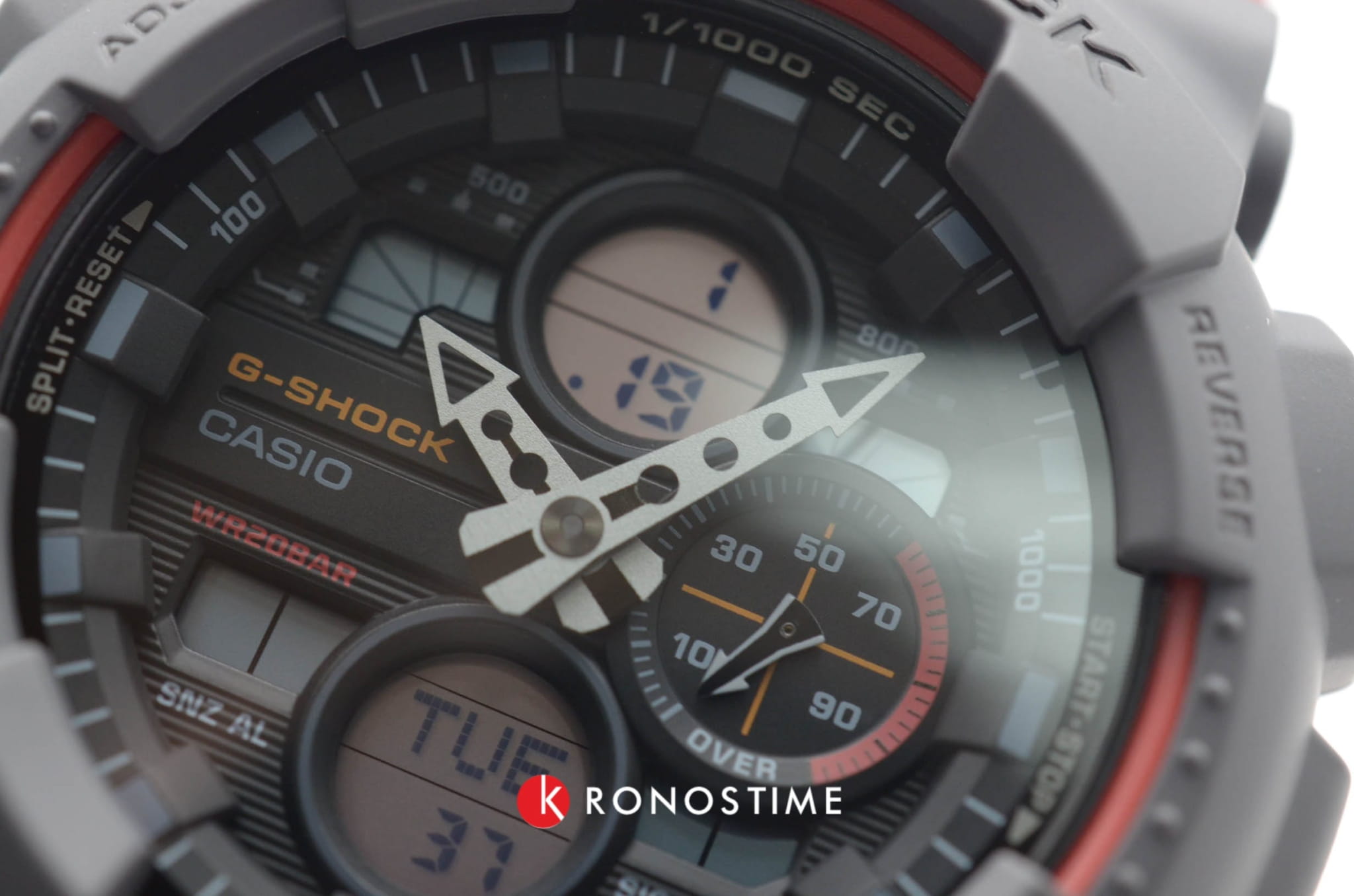 Противоударный корпусУдаропрочный корпусМеханизм заключён в корпус, выполненный из современных материалов, устойчивых к ударам, механическим повреждениям и падению с высоты: инновационный пластик, карбон, нержавеющая сталь, титан. модели позаимствован у серии GA-100, обновления коснулись циферблата и стрелок. Наручные часы представлены в минималистичном исполнении, но яркие элементы оформления делают их интереснее. Для изготовления аксессуара был выбран полимерный пластик, это способствует максимальной защите японского кварцевого механизма от ударов и вибрации. Точность хода +/- 15 секунд в месяц. Батарейка рассчитана на 2 года. Закаленное минеральное стекло. СветодиоднаяСветодиодная подсветкаСветодиодная или LED-подсветка обеспечивает появление яркого холодного свечения за счёт LED-элементов - маленьких лампочек. Они потребляют минимальное количество энергии, чаще всего можно встретить 1 светодиод, в нижней части циферблата. подсветка. Комфортный и гибкий красный ремешок. Отсутствие восприимчивости к магнитным полям. Водонепроницаемость 20 бар. Секундомер, средняя скорость пути, 5 будильников, хронографХронографФункция позволяет измерять отрезки времени с особой точностью: часы, минуты, секунды. Верным признаком хронографа является наличие на циферблате 3 дополнительных окошек-счётчиков., автоматический календарь, мировое времяМировое время Полезное часовое усложнение, отображающее время в основных городах и известных областях по всему миру, оно связано с часовыми поясами, удобно для путешественников и бизнесменов. , таймер. Габариты: 55 x 51,2 x 16,9 мм.