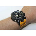 Ударопрочные мужские часы из коллекции Master of G выполнены в стиле миллитари. Исполнение премиум-класса, грязеустойчивые, с водонепроницаемостью в 20 атмосфер. Кварцевые часы с аналоговым и цифровым способами отображения времени, и с корпусом, выполненым из пластика и высокопрочной стали. Черный циферблат защищает надежное сапфировое стекло. Браслет ярко-оранжевого цвета из прочного пластика. Вес часов 119 грамм. Часы Casio GWG-1000-1A9 оснащены множеством дополнительных функций: компас, термометр, таймер обратного отсчета, барометр, высотомер, секундомер, индикатор запаса хода, подсветкой стрелок и дисплея. Заряжаются часы от солнечной батареи, в режиме сохранения энергии сохраняют работоспособность без подзарядки в течении 25 месяцев.