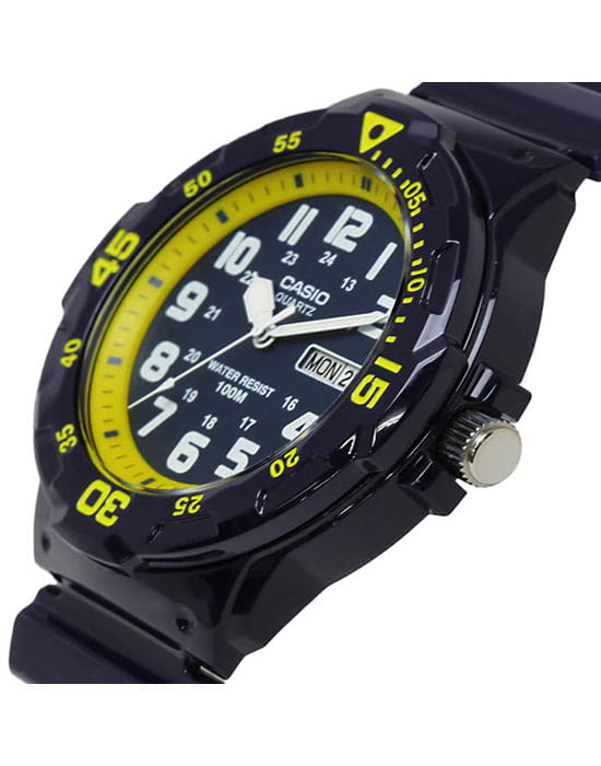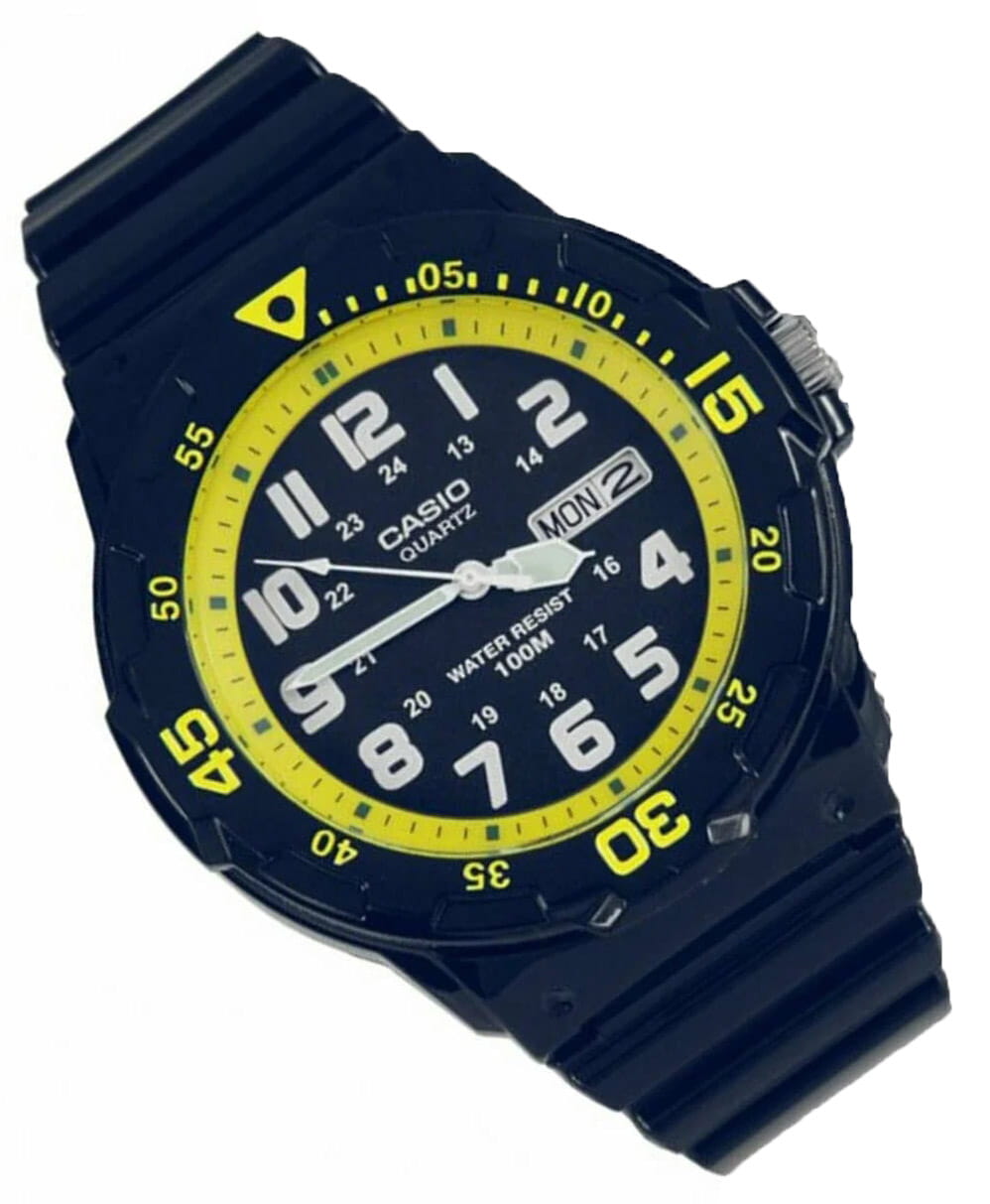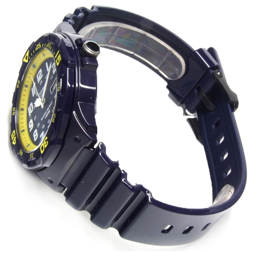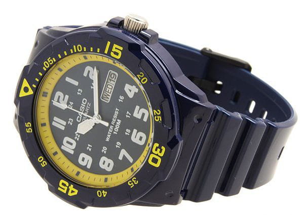 Спортивные японские мужские часы с органическим стеклом Casio Collection MRW-200HC-2B, кварцевый механизм с высокой точностью. Класс водозащиты: 100 метров, позволит плавать, нырять и заниматься другими водными видами спорта. Корпус часов изготовлен из пластика. Пластиковый ремешок на стандартной застёжке. Вращающийся безельБезельВнешний ободок, закрепляющий стекло. В спортивных часах так называется поворотное кольцо с делениями на циферблате, выполняет роль таймера – замеряет отрезки времени на шкале. Неподвижный безель – элемент декора. Однонаправленно вращающийся безель на дайверских часах позволяет фиксировать моменты погружения и выныривания на поверхность. с яркой контрастной разметкой. Акриловое стекло устойчивое к ударному возникновению. Светонакопительное покрытие обеспечивает длительное послесвечение в темноте даже после кратковременного нахождения на свету.