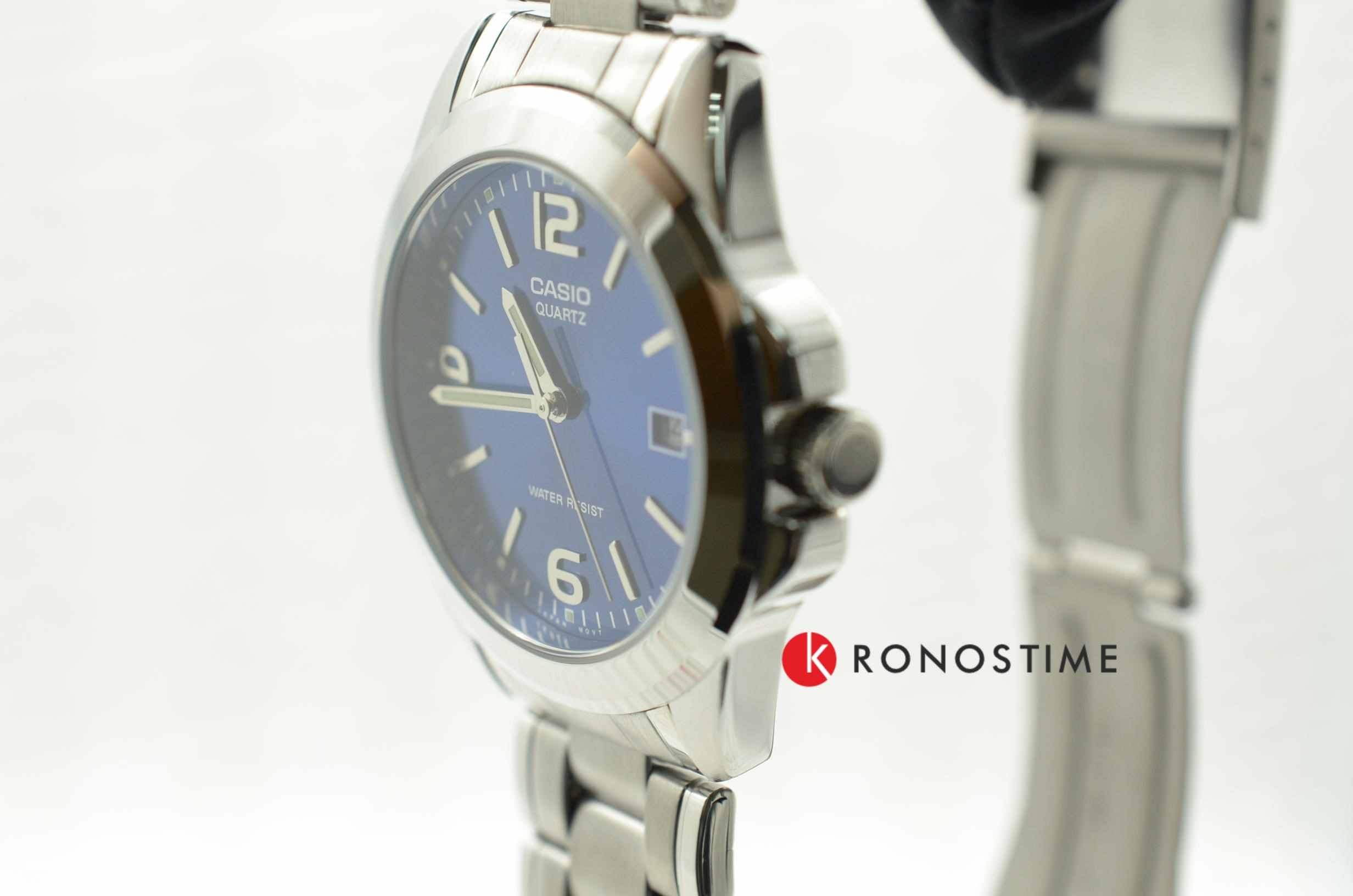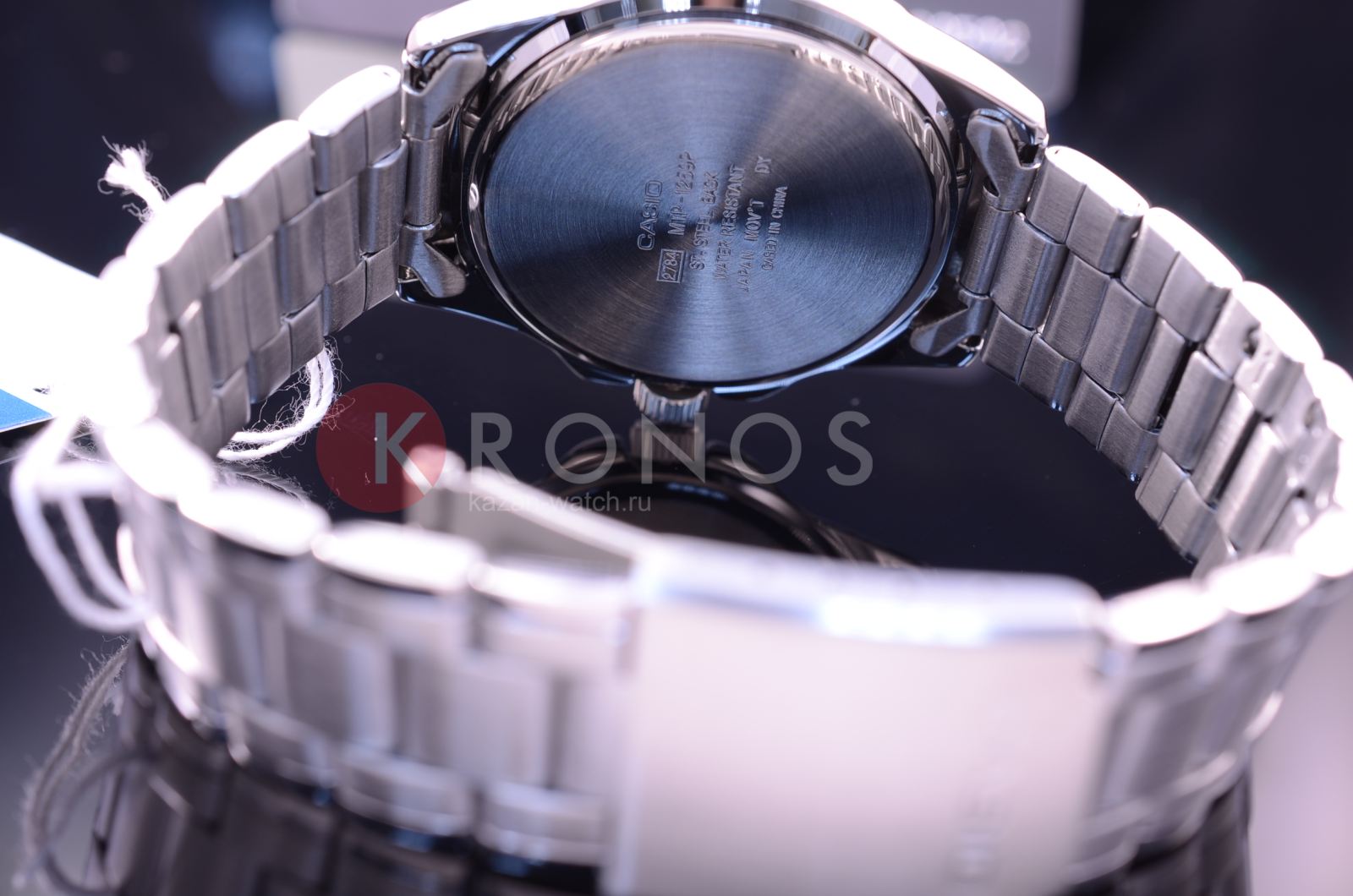Данная модель от Casio придется по вкусу ценителям высокого качества, комфорта и сдержанного дизайна. Корпус выполнен из латуни. Стальной браслет прочно обхватывает запястье и закрепляется с помощью раскладывающейся застежки. Синий циферблат традиционной формы обрамляет аккуратный безельБезельВнешний ободок, закрепляющий стекло. В спортивных часах так называется поворотное кольцо с делениями на циферблате, выполняет роль таймера – замеряет отрезки времени на шкале. Неподвижный безель – элемент декора. Однонаправленно вращающийся безель на дайверских часах позволяет фиксировать моменты погружения и выныривания на поверхность.. Есть небольшое окошечко с календарем. Крупные отчетливые временные отметки сделаны в виде штрихов и арабских цифр. Подсветка NeobriteПодсветка NeobriteИспользование светонакопительных составов на основе сульфида цинка или алюмината стронция, яркий свет можно наблюдать на протяжении 6-10 часов после «зарядки» часов около источника света. обеспечивает видимость показателей в темное время суток. Тип механизма - кварцевый. Вес составляет 92 грамма.