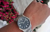Сдержанный дизайн ориентирован на удобство и универсальность в ношении аксессуара. Благодаря крупным белым цифрам на черном циферблате, определить время не составит труда. Подсветка NeobriteПодсветка NeobriteИспользование светонакопительных составов на основе сульфида цинка или алюмината стронция, яркий свет можно наблюдать на протяжении 6-10 часов после «зарядки» часов около источника света. обеспечивает видимость показателей в темноте. Аккуратный латунный корпус надежно соединен с браслетом из нержавеющей стали. Раскладывающаяся застежка прочно обхватывает запястье и сводит к минимуму потерю аксессуара. Тип механизма - кварцевый. Батарейка служит 3 года. Вес аксессуара равен 91 граммам.