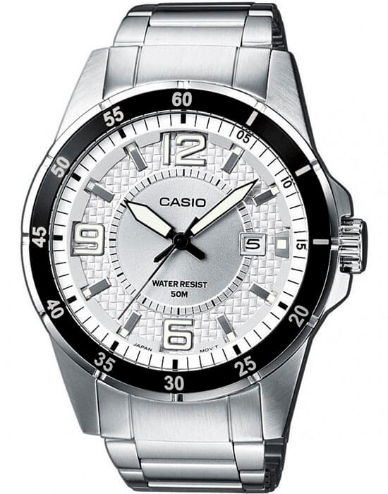 Модный аксессуар от Casio призван покорить сердца ценителей комфорта и практичности. Прочный серебристый корпус из нержавеющей стали плавно отражает падающий свет. Элегантный браслет со звеньями прочно закрепляется на запястье с помощью застежки с тройным сгибом. Штрихи и арабские цифры крупного размера призваны облегчить определение времени. Есть аккуратное окошечко с календарем. Подсветка NeobriteПодсветка NeobriteИспользование светонакопительных составов на основе сульфида цинка или алюмината стронция, яркий свет можно наблюдать на протяжении 6-10 часов после «зарядки» часов около источника света. обеспечивает комфортное определение времени в темное время суток. Минеральное стекло. Тип механизма - кварцевый. Батарейка работает 3 года. Водонепроницаемость равна 50 WR.