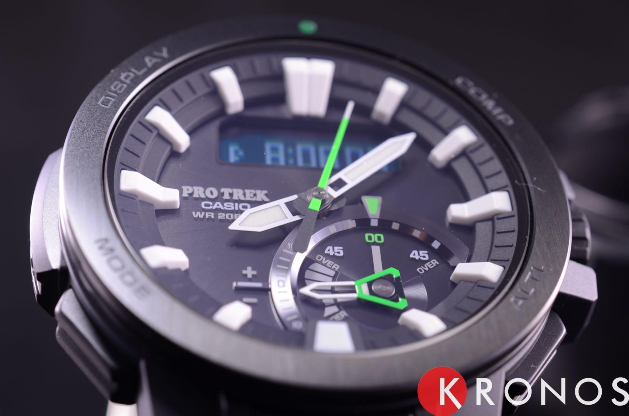 Модель с зелёными деталями отражает спортивный стиль и выигрышно смотрится на запястье. Ударопрочный корпусУдаропрочный корпусМеханизм заключён в корпус, выполненный из современных материалов, устойчивых к ударам, механическим повреждениям и падению с высоты: инновационный пластик, карбон, нержавеющая сталь, титан. выполнен из пластика и стали 316L с IP-покрытиемIP-покрытиеМетод ионного напыления. Демонстрирует повышенную устойчивость к истиранию, окислению и химическим веществам. Под воздействием высокого давления и температуры около 1500°C молекулы металла надёжно соединяются с частицами корпуса часов., что делает его устойчивым к различным видам повреждений. Наручные часы с японским кварцевым механизмом работают от солнечной батареи , функция сохранения энергии увеличивает срок работы часов без подзарядки до 21 месяца. Сапфировое стекло с покрытием «антиблик». Двойная светодиодная подсветкаСветодиодная подсветкаСветодиодная или LED-подсветка обеспечивает появление яркого холодного свечения за счёт LED-элементов - маленьких лампочек. Они потребляют минимальное количество энергии, чаще всего можно встретить 1 светодиод, в нижней части циферблата.. Водостойкость 20 бар. Устойчивость к температуре ниже -10°C. Коррекция времени радиосигналом, барометр, лунный календарь, высотомер, таймер, график восхода и заката солнца, датчик приливов и отливов, мировое времяМировое время Полезное часовое усложнение, отображающее время в основных городах и известных областях по всему миру, оно связано с часовыми поясами, удобно для путешественников и бизнесменов. – 31 часовой пояс, календарь, хронографХронографФункция позволяет измерять отрезки времени с особой точностью: часы, минуты, секунды. Верным признаком хронографа является наличие на циферблате 3 дополнительных окошек-счётчиков.. Таймер рыбалки подсказывает, какое время оптимально подходит для ловли рыбы. Габариты: 58,7 x 52,3 x 14,5 мм.