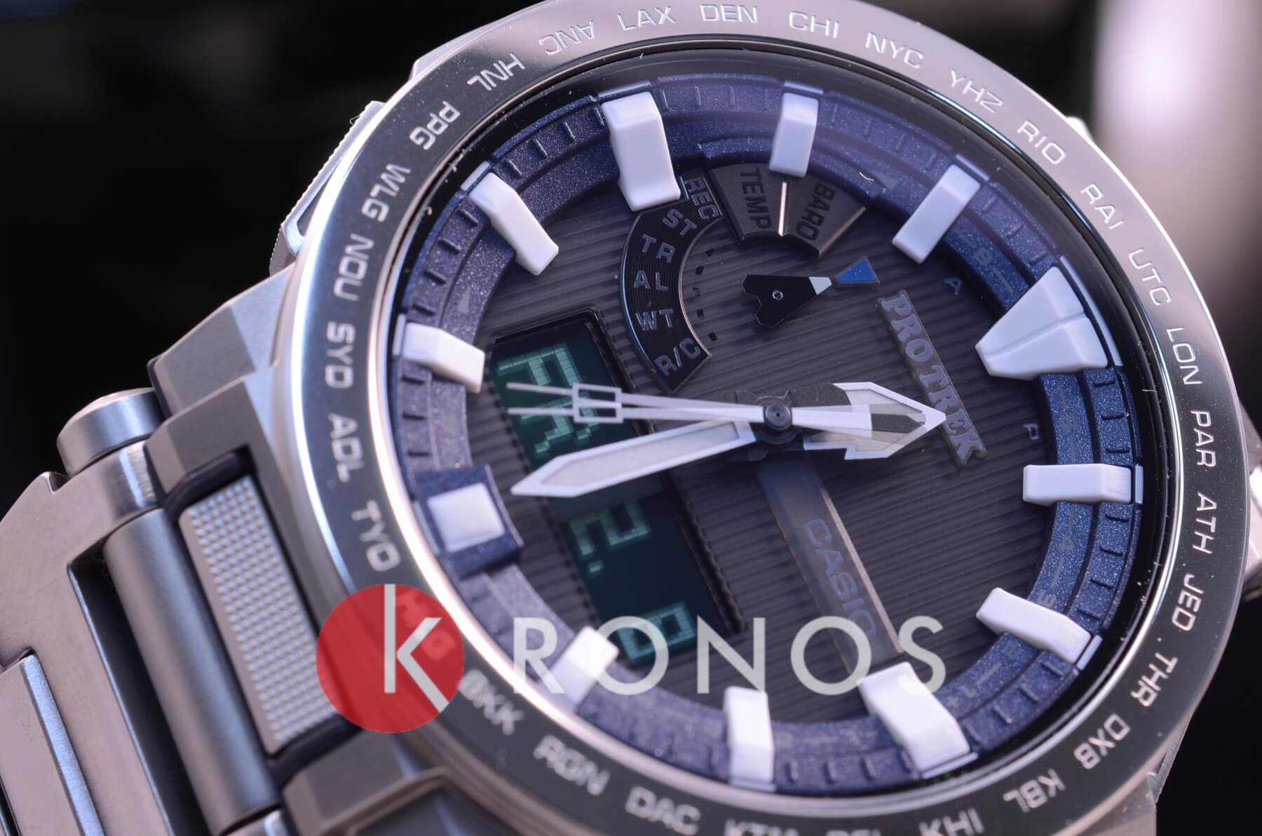 Casio представляет новую модель из Premium линейки Protek «MANASLU», которая получила свое название от горы «Manaslu (Manasluu)» 8163 м на высоте Гималаев, также известной как гора духа, на которую японская команда впервые поднялась в 1956 году Зеркальная отделка улучшает текстуру и выражает цвет каменной горы Манаслу Кроме того, синий цвет выражает цвет неба Гималаев, белый указатель выражает снежный и ледовый цвет Гималаев