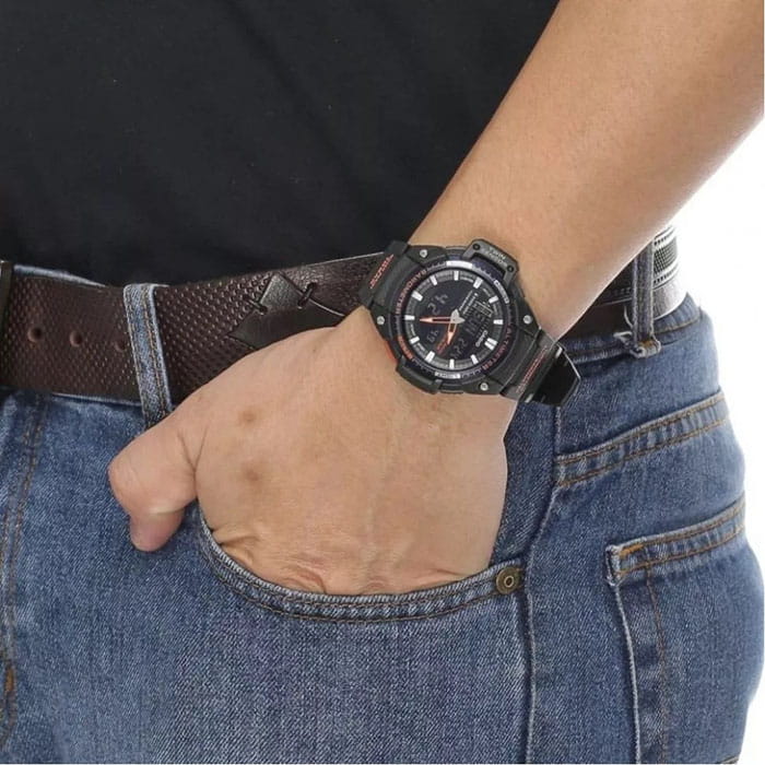 Спортивные мужские многофункциональные часы с аналогово-цифровым циферблатом черного цвета. Пластиковый корпус с алюминиевым безелем крепится на руке ремешком, изготовленным из пластика в черном цвете. Часы Casio SGW-450H-2B оснащены электролюминесцентной подсветкой на весь экран, высотомером, барометром, термометром и такими базовыми функциями, как секундомер, таймер и будильник. Корпус - Пластиковый; Стекло - Минеральное; Водозащита - 100 м. (WR 100); Материал ремешка - Пластиковый; Цвет ремешка - Черный; Цвет циферблата - Lcd.