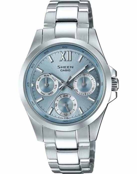 Напоминаем, что коллекция Casio Sheen - это линейка ультра-стильных женских фешн-часов в стальном корпусе, способных украсить собой самое изысканное и утонченное женское запястье. Особенностью коллекции, сделавшей ее популярной во всем мире, является использование знаменитых кристаллов Swarovski® в отделке циферблата каждой модели Sheen.