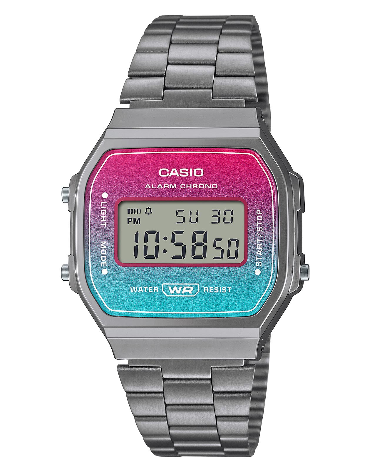 Японские мужские часы с хронографом Casio Vintage A168WERB-2ADF (A168WERB-2A), электронный механизм с высокой точностью. Класс водозащиты: 30 метров, позволит защитить корпус от случайных брызг или капель дождя. Корпус часов изготовлен из пластика, цвета.