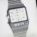 Спортивные японские унисекс часы с секундомеромСекундомерСекундоме́р — прибор, способный измерять интервалы времени с точностью до долей секунды. Casio Vintage AQ-800E-7ADF (AQ-800E-7A2), кварцевый механизм с высокой точностью. Класс водозащиты: 30 метров, позволит защитить корпус от случайных брызг или капель дождя. Корпус часов изготовлен из пластика серебристого цвета. На белом циферблате центральные часовая и минутная стрелки. Отдельно вынесен дополнительный циферблат мирового времениМировое время Полезное часовое усложнение, отображающее время в основных городах и известных областях по всему миру, оно связано с часовыми поясами, удобно для путешественников и бизнесменов. , позволяющий одновременно отобразить время двух часовых поясов . У модели присутствуют функции секундомераСекундомерСекундоме́р — прибор, способный измерять интервалы времени с точностью до долей секунды. с точностью 1/100 секунды и пределом измерения 1 час, ежедневного будильникаБудильникБуди́льник — часы, в заданный момент времени подающие звуковой, световой и/или в редких случаях другой сигнал.. Стальной браслет на раскладной застёжкеРаскладная застёжкаТакой тип застёжки используется только на браслетах из металла. Она никогда не раскрывается полностью, происходит разделение на 2 и более частей. Раскладывающая застёжка снизит вероятность потери часов к минимуму..