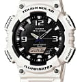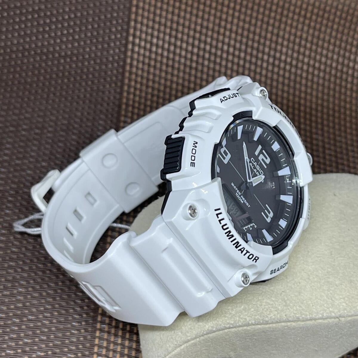 Многофункциональные и сдержанные часы в спортивном стиле станут идеальным выбором для современных мужчин. Analog-Digital Combination AQ-S810WC-7A. LCD циферблат подсвечивается светодиодной подсветкойСветодиодная подсветкаСветодиодная или LED-подсветка обеспечивает появление яркого холодного свечения за счёт LED-элементов - маленьких лампочек. Они потребляют минимальное количество энергии, чаще всего можно встретить 1 светодиод, в нижней части циферблата.. Питание от солнечной энергии, индикатор заряда батареи. Функция автоматического сохранения энергии (отключает LCD дисплей). Время работы аккумулятора без подзарядки - 10 месяцев, при включенной функции сохранения энергии - 23 месяцев. CекундомерСекундомерСекундоме́р — прибор, способный измерять интервалы времени с точностью до долей секунды. с точностью показаний 1/100с и временем измерения 1ч. Два таймераТаймерОтсчитывает секунды в обратном направлении в заданном интервале времени. обратного отсчета времени от 5с до 100 мин с устанавливаемым количеством повторов от 1 до 10. Мировое времяМировое время Полезное часовое усложнение, отображающее время в основных городах и известных областях по всему миру, оно связано с часовыми поясами, удобно для путешественников и бизнесменов. . 12-ти и 24-х часовой формат времени. Шесть языков отображения дня недели: английский, португальский, испанский, французский, немецкий и итальянский. Функция включения/отключения звука. Класс водозащиты: 100 метров, позволит плавать, нырять и заниматься другими водными видами спорта. Пластиковый ремешок на стандартной застёжке.