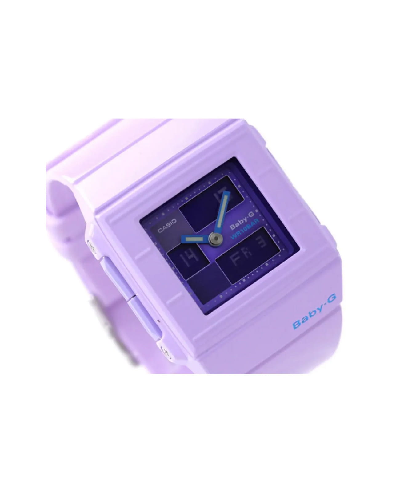 Японские женские часы-хронографХронографФункция позволяет измерять отрезки времени с особой точностью: часы, минуты, секунды. Верным признаком хронографа является наличие на циферблате 3 дополнительных окошек-счётчиков. Casio Baby-G BGA-200-6EDR из коллекции Baby-G. Минеральное стеклоМинеральное стеклоМинеральное стекло представляет собой искусственно выращенный минерал кварца. Такое стекло отличается особой устойчивостью к повреждениям и царапинам. Уступает по некоторым качествам сапфировому стеклу. устойчивое к появлению царапин, обладающее высокой прозрачностью. Корпус часов изготовлен из полимерного материала. Светодиодная подсветкаСветодиодная подсветкаСветодиодная или LED-подсветка обеспечивает появление яркого холодного свечения за счёт LED-элементов - маленьких лампочек. Они потребляют минимальное количество энергии, чаще всего можно встретить 1 светодиод, в нижней части циферблата. с функцией послесвечения. Ударопрочный корпусУдаропрочный корпусМеханизм заключён в корпус, выполненный из современных материалов, устойчивых к ударам, механическим повреждениям и падению с высоты: инновационный пластик, карбон, нержавеющая сталь, титан. защищает механизм от ударов и вибрации. Функция Мирового времениМировое время Полезное часовое усложнение, отображающее время в основных городах и известных областях по всему миру, оно связано с часовыми поясами, удобно для путешественников и бизнесменов. , автоматический переход на зимнее и летнее время, возможность включения/отключения данной функции. СекундомерСекундомерСекундоме́р — прибор, способный измерять интервалы времени с точностью до долей секунды. с точностью измерения 1/100 секунды и измерением до 23 часов 59 минут 59,99 cек. ТаймерТаймерОтсчитывает секунды в обратном направлении в заданном интервале времени. обратного отсчета (диапазон времени 24 часа), автоматический календарь, 12/24 отображение времени, будильникБудильникБуди́льник — часы, в заданный момент времени подающие звуковой, световой и/или в редких случаях другой сигнал.. Функция включения/отключения звука кнопок. Класс водозащиты: 100 метров, позволит плавать без погружения. Ремешок из полимерного материала на стандартной застежке.