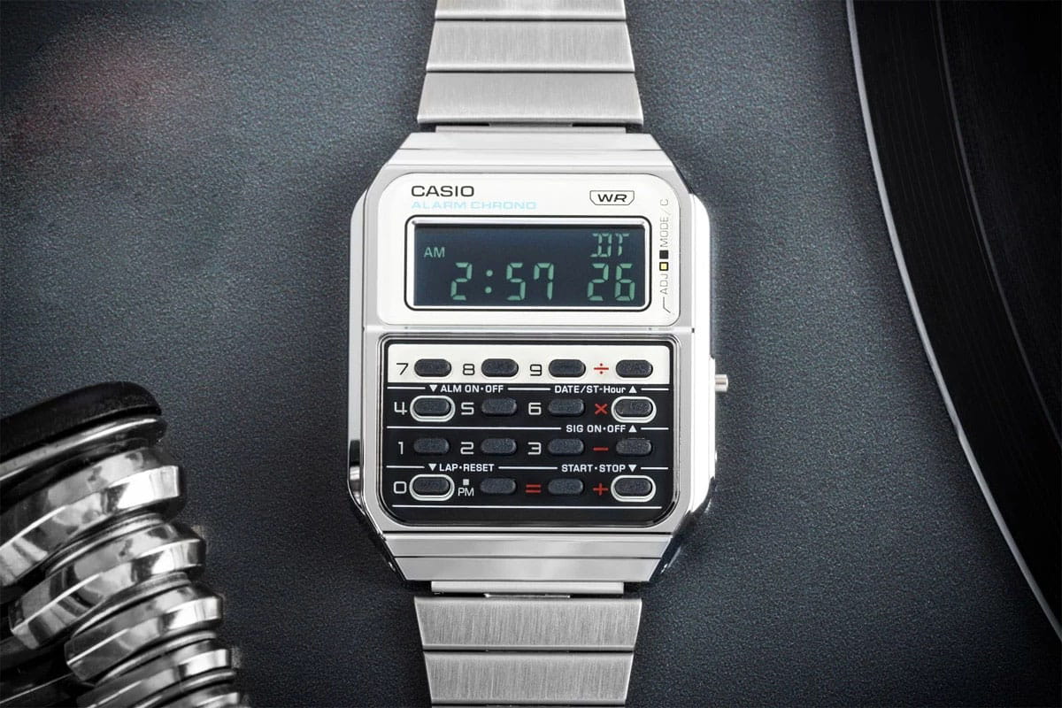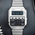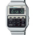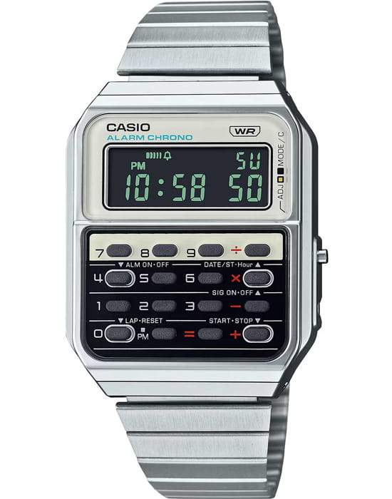 Японские унисекс часы с хронографом Casio Vintage CA-500WE-7B, кварцевый механизм с высокой точностью. Корпус часов изготовлен из пластика, серебристого цвета. Светодиодная подсветкаСветодиодная подсветкаСветодиодная или LED-подсветка обеспечивает появление яркого холодного свечения за счёт LED-элементов - маленьких лампочек. Они потребляют минимальное количество энергии, чаще всего можно встретить 1 светодиод, в нижней части циферблата., секундомерСекундомерСекундоме́р — прибор, способный измерять интервалы времени с точностью до долей секунды. с точностью измерений 1/100 сек., общее время измерений 24 часа. Будильник с функцией Snooze. Автоматический календарь. 8-ми разрядный калькулятор. Класс водозащиты: 30 метров, позволит защитить корпус от случайных брызг или капель дождя. Браслет из стали на раскладной застёжкеРаскладная застёжкаТакой тип застёжки используется только на браслетах из металла. Она никогда не раскрывается полностью, происходит разделение на 2 и более частей. Раскладывающая застёжка снизит вероятность потери часов к минимуму.. Калькулятор позволяет производить различные математические вычисления, используя числа, содержащие до 8 знаков.
