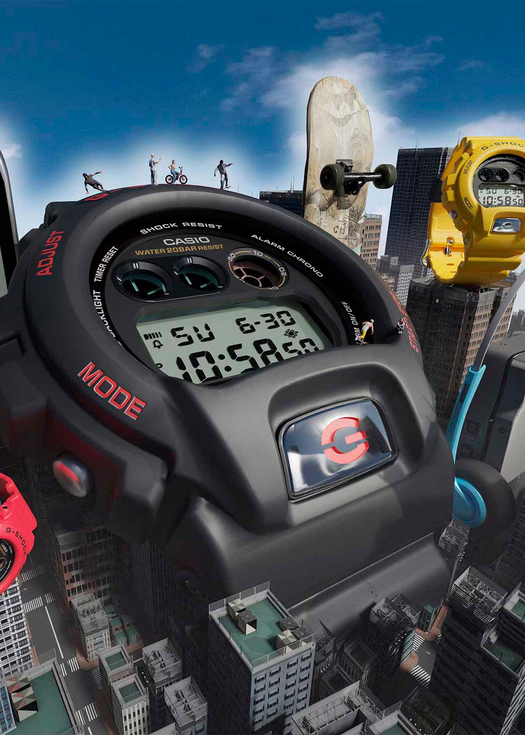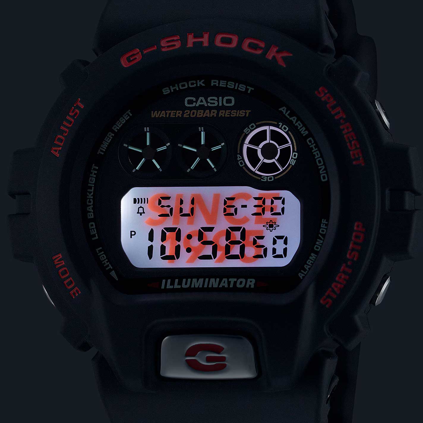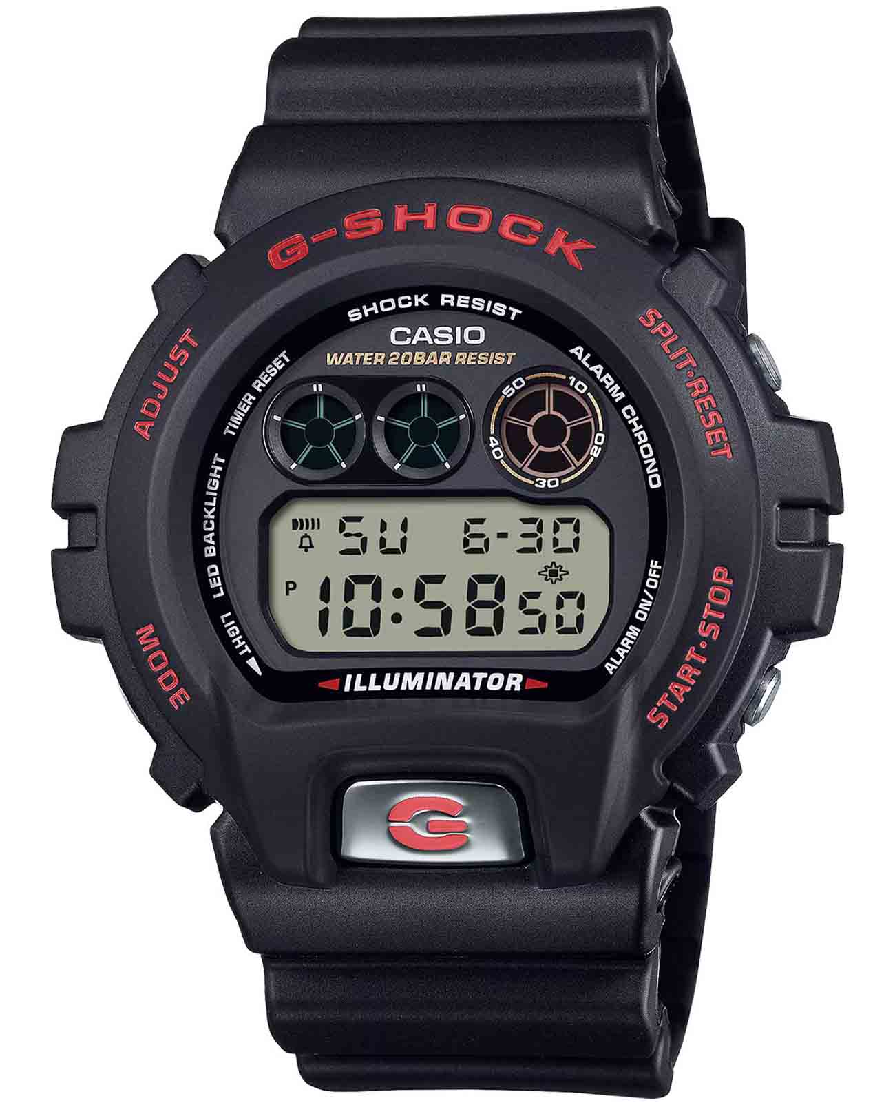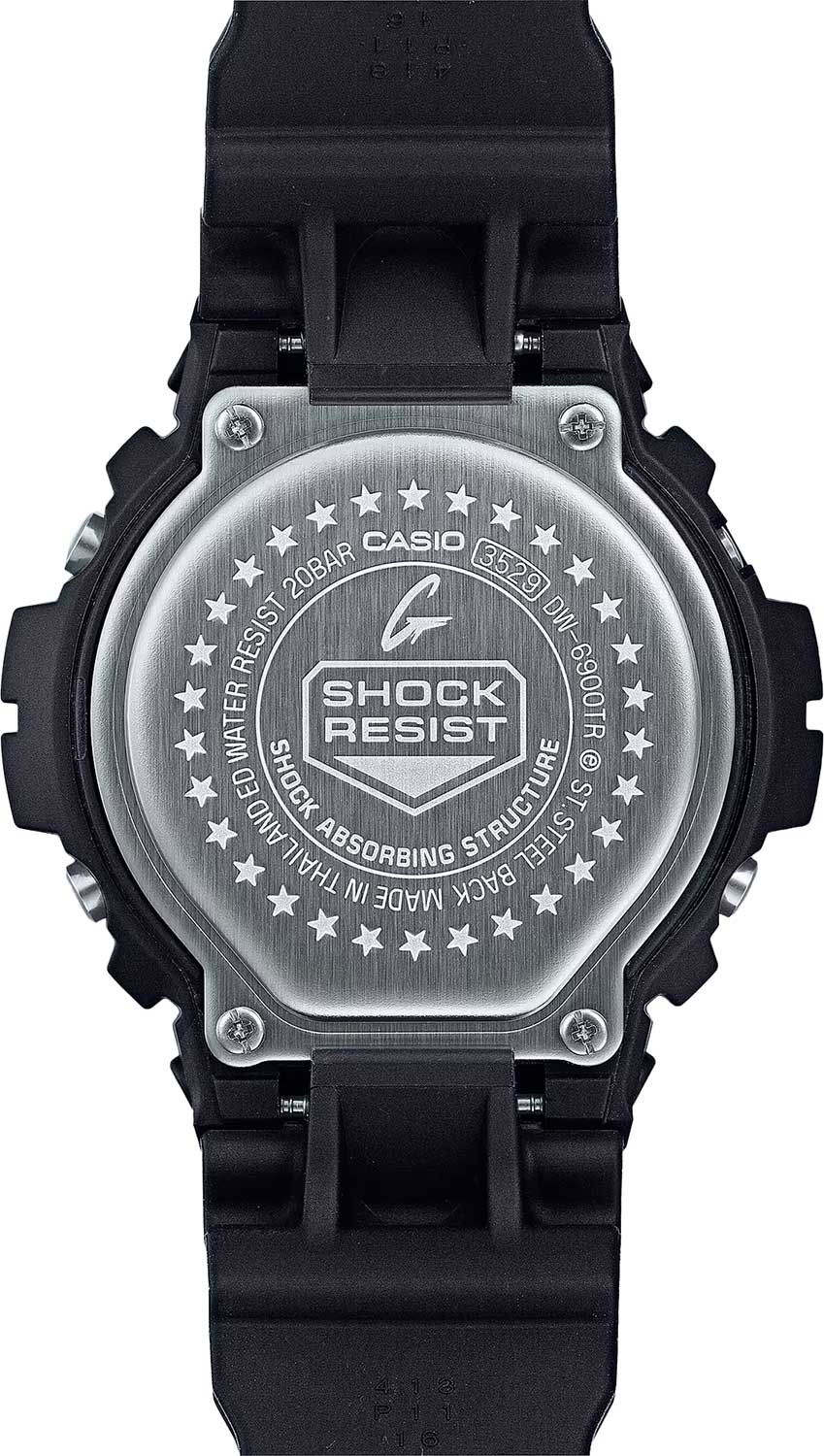 Японские мужские часы Casio G-Shock DW-6900TR-1. В дизайне модели прослеживается визуальная эстетика 90-х годов, что добавляет ей особого шарма в глазах тех, кто помнит первые кассетные плееры SONY и двухкассетники SHARP. При активации подсветки на циферблате появляется надпись «Since 1995». Ударопрочный корпусУдаропрочный корпусМеханизм заключён в корпус, выполненный из современных материалов, устойчивых к ударам, механическим повреждениям и падению с высоты: инновационный пластик, карбон, нержавеющая сталь, титан. из полимерного материала защищает механизм от ударов и вибрации. Минеральное стеклоМинеральное стеклоМинеральное стекло представляет собой искусственно выращенный минерал кварца. Такое стекло отличается особой устойчивостью к повреждениям и царапинам. Уступает по некоторым качествам сапфировому стеклу. устойчивое к появлению царапин, обладающее высокой прозрачностью. Светодиодная подсветкаСветодиодная подсветкаСветодиодная или LED-подсветка обеспечивает появление яркого холодного свечения за счёт LED-элементов - маленьких лампочек. Они потребляют минимальное количество энергии, чаще всего можно встретить 1 светодиод, в нижней части циферблата., послесвечение. 12/24-часовой формат. вечный календарьВечный календарьКлассическое часовое усложнение, представляющее собой календарь, рассчитанный на несколько лет вперёд (стандартно – до 2099 года). Определяет текущую дату, день недели, месяц.. СекундомерСекундомерСекундоме́р — прибор, способный измерять интервалы времени с точностью до долей секунды.. ТаймерТаймерОтсчитывает секунды в обратном направлении в заданном интервале времени.. Часовой сигнал времени. Многофункциональный будильник. Класс водозащиты: 200 метров, позволит плавать, нырять и заниматься другими водными видами спорта. Ремешок из полимерного материала на стандартной застежке.