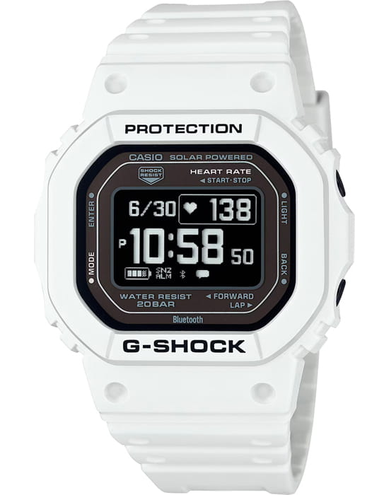 Ваши тренировки выйдут на новый уровень благодаря этой современной новинке от Casio. Японские спортивные наручные часы в серии G-SQUAD из биопластика Casio G-Shock DW-H5600-7DR (DW-H5600-7), кварцевый механизм с высокой точностью. Класс водозащиты: 200 метров, позволит плавать, нырять и заниматься другими водными видами спорта. Корпус часов изготовлен из пластика. Модель в серии G-SQUAD выполнена из биопластика, который изготавливается из возобновляемых органических ресурсов. Мультиспортивный профили: бег, ходьба, езда на велосипеде и др. Питание от солнечной энергии Tough SolarTough SolarТехнология основана на подзарядке аккумулятора от источника солнечного света, специальная панель улавливает солнечные лучи и преобразует их в энергию для работы часов. Достаточно пары минут нахождения на солнце для функционирования часов в течении суток. - солнечные батарейки большой мощности, индикатор заряда батареи. Функция автоматического сохранения энергии. Время работы аккумулятора без подзарядки: 35ч, 1 месяц (без использования пульсометра), при включенной функции сохранения энергии до 11 месяцев. Возможность зарядки через специальный кабель с разъемом USB типа A. Ударопрочный корпусУдаропрочный корпусМеханизм заключён в корпус, выполненный из современных материалов, устойчивых к ударам, механическим повреждениям и падению с высоты: инновационный пластик, карбон, нержавеющая сталь, титан. защищает механизм от ударов и вибрации. Циферблат подсвечивается светодиодомСветодиодная подсветкаСветодиодная или LED-подсветка обеспечивает появление яркого холодного свечения за счёт LED-элементов - маленьких лампочек. Они потребляют минимальное количество энергии, чаще всего можно встретить 1 светодиод, в нижней части циферблата., функция автоподсветки освещает циферблат при повороте часов к лицу. Настраиваемое послесвечение 1,5 или 3сек. Цвет подсветки: белый. Дисплей mip LCD позволяет легко считывать данные даже в темноте. 12-ти и 24-х часовой формат времени. СекундомерСекундомерСекундоме́р — прибор, способный измерять интервалы времени с точностью до долей секунды. с точностью показаний 1с и временем измерения 100ч. Сплит-хронографСплит-хронографИспользуется для измерения продолжительности нескольких временных отрезков, начинающихся одновременно, а заканчивающихся в разное время.. ТаймерТаймерОтсчитывает секунды в обратном направлении в заданном интервале времени. обратного отсчета от 1сек до 1ч. Мировое времяМировое время Полезное часовое усложнение, отображающее время в основных городах и известных областях по всему миру, оно связано с часовыми поясами, удобно для путешественников и бизнесменов. – 38 городов (38 часовых поясов), всемирное координированное время (UTCUTCВсемирное кординационное время, не имеющее привязки к географическому положению Гринвича, основывается на атомном отсчёте времени. Регулировка времени осуществляется более точно, чем устаревшее GMT.