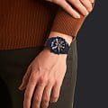 Достаточно внушительный черно-синий циферблат с оригинальным расположением счётчиков. Многофункциональная модель пригодится на любой случай жизни, ведь она оснащена Bluetooth 4.0BluetoothСовременная технология, позволяющая синхронизировать часы с телефоном и переносить данные. Часы с Bluetooth расширяют возможности вашего смартфона и делают его использование ещё более удобным., хронографомХронографФункция позволяет измерять отрезки времени с особой точностью: часы, минуты, секунды. Верным признаком хронографа является наличие на циферблате 3 дополнительных окошек-счётчиков., секундомером, тахиметромТахиметрРазмеченная шкала, располагается на ободке или безеле часов. Тахиметр позволяет рассчитать скорость на определённом участке пути, расстояние измеряется в километрах или милях., таймером, будильником, календарём, есть мировое времяМировое время Полезное часовое усложнение, отображающее время в основных городах и известных областях по всему миру, оно связано с часовыми поясами, удобно для путешественников и бизнесменов. и функция поиска телефона. Питание поступает от солнечной энергии - . Водонепроницаемость до 10 бар. Корпус, браслет, безельБезельВнешний ободок, закрепляющий стекло. В спортивных часах так называется поворотное кольцо с делениями на циферблате, выполняет роль таймера – замеряет отрезки времени на шкале. Неподвижный безель – элемент декора. Однонаправленно вращающийся безель на дайверских часах позволяет фиксировать моменты погружения и выныривания на поверхность. из нержавеющей стали. Минеральное стекло. Двойная светодиодная подсветкаСветодиодная подсветкаСветодиодная или LED-подсветка обеспечивает появление яркого холодного свечения за счёт LED-элементов - маленьких лампочек. Они потребляют минимальное количество энергии, чаще всего можно встретить 1 светодиод, в нижней части циферблата.. Габариты: 50 x 46 x 9,8 мм.