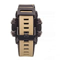 Наручные часы в песочной расцветке отличаются броским внешним видом, они стильно смотрятся на широком запястье. Индикатор режима работы часов сделан в виде пропеллера. Новая модель GA-2000 реализует технологию Carbon Core GuardCarbon Core Guard Новейшая структура корпуса, разработанная Casio. Полиуретановая пластина дополнительно усилена карбоновыми вставками, что придаёт специальную защиту от механических повреждений. Карбон отличается лёгкостью и прочностью., полимер имеет включения из углеродного волокна. Батарейка рассчитана на 2 года. Двойная задняя крышка: первая из стали 316L для защиты кварцевого механизма, вторая из пластика. Минеральное стекло. Надёжный ремешок из полимерного материала. Яркая светодиодная подсветкаСветодиодная подсветкаСветодиодная или LED-подсветка обеспечивает появление яркого холодного свечения за счёт LED-элементов - маленьких лампочек. Они потребляют минимальное количество энергии, чаще всего можно встретить 1 светодиод, в нижней части циферблата. циферблата и дисплеев. Водонепроницаемость 200 метров. Секундомер, хронографХронографФункция позволяет измерять отрезки времени с особой точностью: часы, минуты, секунды. Верным признаком хронографа является наличие на циферблате 3 дополнительных окошек-счётчиков., автоматический календарь, мировое времяМировое время Полезное часовое усложнение, отображающее время в основных городах и известных областях по всему миру, оно связано с часовыми поясами, удобно для путешественников и бизнесменов. , будильник. Габариты: 48,7 x 51,2 x 14,1 мм.