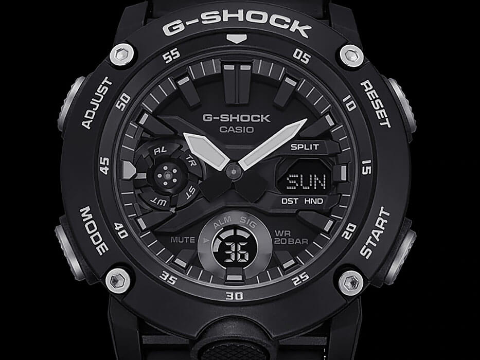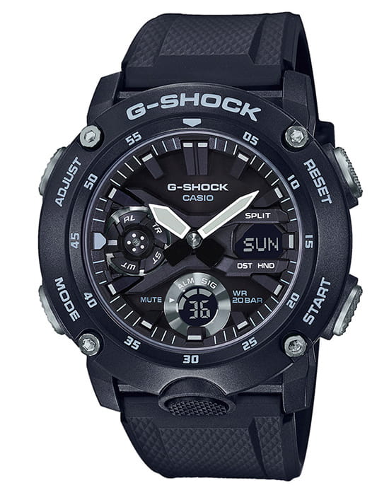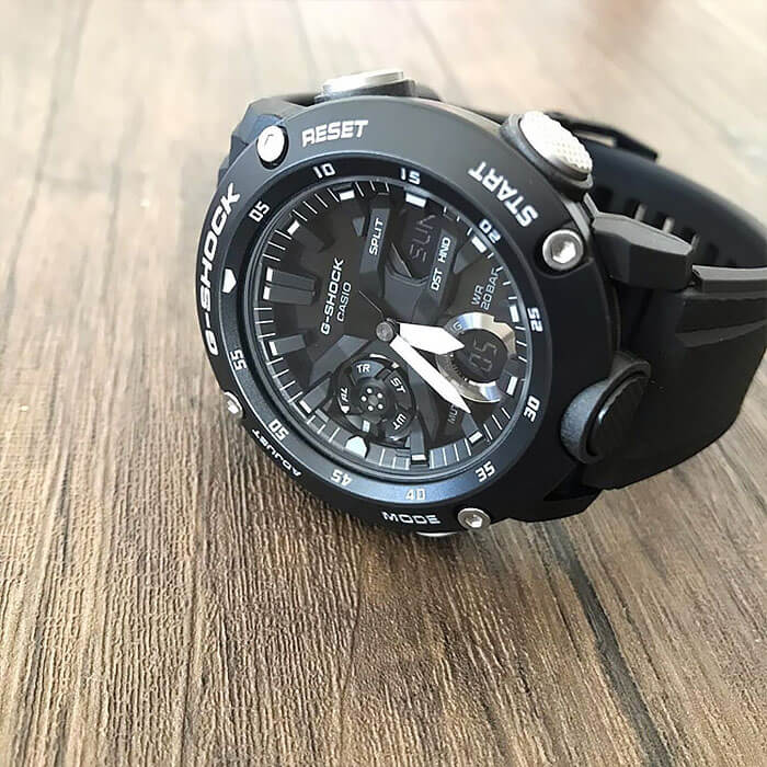 Японские мужские часы-хронографХронографФункция позволяет измерять отрезки времени с особой точностью: часы, минуты, секунды. Верным признаком хронографа является наличие на циферблате 3 дополнительных окошек-счётчиков. Casio G-Shock GA-2000S-1A из коллекции G-Shock. Противоударный пластиковый корпус с карбоновыми волокнами более прочный и, в то же время, более легкий. Минеральное стеклоМинеральное стеклоМинеральное стекло представляет собой искусственно выращенный минерал кварца. Такое стекло отличается особой устойчивостью к повреждениям и царапинам. Уступает по некоторым качествам сапфировому стеклу. устойчивое к появлению царапин, обладающее высокой прозрачностью. Ударопрочный корпусУдаропрочный корпусМеханизм заключён в корпус, выполненный из современных материалов, устойчивых к ударам, механическим повреждениям и падению с высоты: инновационный пластик, карбон, нержавеющая сталь, титан. защищает механизм от ударов и вибрации. Многокомпонентный циферблат состоит из цифровых окошек указателей числа и дня недели, а также индикатора режима работы часов, который расположен в позиции 9 часов и выполнен в виде пропеллера. Светодиодная подсветкаСветодиодная подсветкаСветодиодная или LED-подсветка обеспечивает появление яркого холодного свечения за счёт LED-элементов - маленьких лампочек. Они потребляют минимальное количество энергии, чаще всего можно встретить 1 светодиод, в нижней части циферблата. освещает весь циферблат. Мировое времяМировое время Полезное часовое усложнение, отображающее время в основных городах и известных областях по всему миру, оно связано с часовыми поясами, удобно для путешественников и бизнесменов. – 48 городов (29 часовых поясов). СекундомерСекундомерСекундоме́р — прибор, способный измерять интервалы времени с точностью до долей секунды. с точностью измерения 1/100 секунды и измерением до 23 часов 59 минут 59,99 cек. ТаймерТаймерОтсчитывает секунды в обратном направлении в заданном интервале времени. обратного отсчета (диапазон времени 24 часа), автоматический календарь, 12/24 отображение времени. 5 будильниковБудильникБуди́льник — часы, в заданный момент времени подающие звуковой, световой и/или в редких случаях другой сигнал., ежечасный сигнал. Класс водозащиты: 200 метров, позволит плавать, нырять и заниматься другими водными видами спорта. Ремешок из полимерного материала на стандартной застежке.