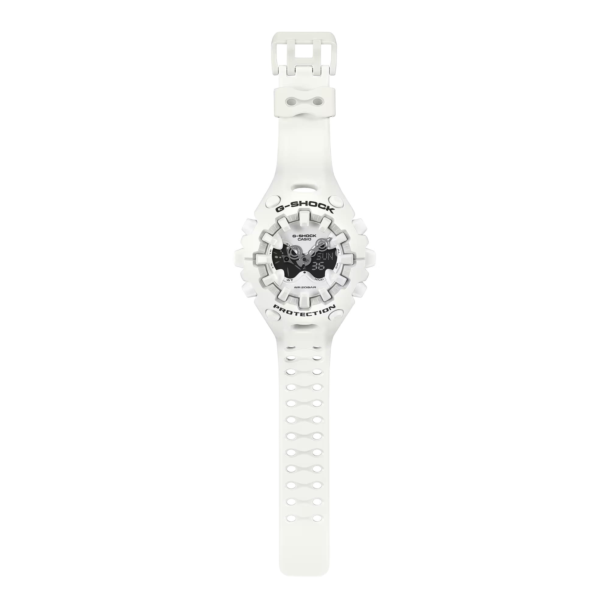 Мужские наручные часы Casio G-Shock GA-V01-7A — это яркое сочетание футуристического дизайна и передовых технологий. Модель выполнена в ударопрочном корпусеУдаропрочный корпусМеханизм заключён в корпус, выполненный из современных материалов, устойчивых к ударам, механическим повреждениям и падению с высоты: инновационный пластик, карбон, нержавеющая сталь, титан. из пластика. Часы работают на кварцевом механизме, обеспечивающем точность хода. Батарейка рассчитана на 10 лет использования, что делает модель особенно экономичной и удобной в эксплуатации. Часы обладают водонепроницаемостью до WR200, позволяют плавать, нырять и заниматься другими водными видами спорта без опасений за сохранность механизма. Циферблат дополнен функцией мирового времениМировое время Полезное часовое усложнение, отображающее время в основных городах и известных областях по всему миру, оно связано с часовыми поясами, удобно для путешественников и бизнесменов. , а также возможностью переключения между 12-ти и 24-х часовым форматом времени. Присутствуют функции хронографа, секундомераСекундомерСекундоме́р — прибор, способный измерять интервалы времени с точностью до долей секунды. с точностью 1/100 секунды, таймераТаймерОтсчитывает секунды в обратном направлении в заданном интервале времени. обратного отсчёта на 24 часа, пяти ежедневных будильниковБудильникБуди́льник — часы, в заданный момент времени подающие звуковой, световой и/или в редких случаях другой сигнал. и почасового сигнала. Также реализована функция перемещения стрелок. Циферблат защищен прочным минеральным стекломМинеральное стеклоМинеральное стекло представляет собой искусственно выращенный минерал кварца. Такое стекло отличается особой устойчивостью к повреждениям и царапинам. Уступает по некоторым качествам сапфировому стеклу., а ремешок изготовлен из высококачественного полимерного материала, обеспечивающего комфорт при ношении.Светодиодная подсветкаСветодиодная подсветкаСветодиодная или LED-подсветка обеспечивает появление яркого холодного свечения за счёт LED-элементов - маленьких лампочек. Они потребляют минимальное количество энергии, чаще всего можно встретить 1 светодиод, в нижней части циферблата. освещает весь циферблат, после отпускания кнопки свечение продолжается еще некоторое время. Эта модель — настоящий прорыв в дизайне линейки G-Shock, богатый набор функций делают их не просто аксессуаром, а верным спутником в любом деле. Это идеальный выбор для тех, кто ценит стиль, надёжность и инновационные технологии.
