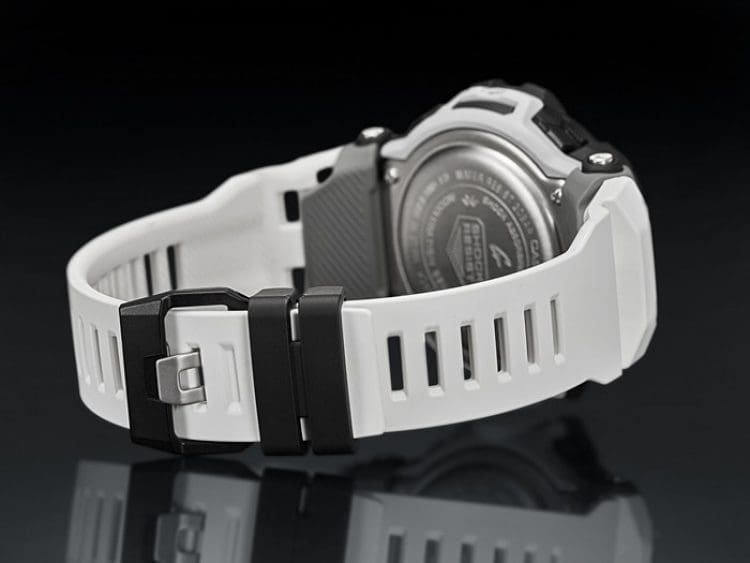 Японские мужские ударопрочные часы c функцией Bluetooth и шагомером Casio G-Shock GBD-100-1A7, электронный механизм с высокой точностью. Класс водозащиты: 200 метров, позволит плавать, нырять и заниматься другими водными видами спорта. Корпус часов изготовлен из пластика, черного цвета.