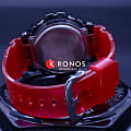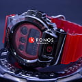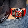 Наручные часы выполнены в облике моделей 80-х годов. 3 окошка Triple Graph разного размера расположились в верхней части красного циферблата, в нижней – цифровой дисплей. Противоударный корпусУдаропрочный корпусМеханизм заключён в корпус, выполненный из современных материалов, устойчивых к ударам, механическим повреждениям и падению с высоты: инновационный пластик, карбон, нержавеющая сталь, титан. сделан из сочетания пластика и карбоновых волокон, он защищён стальной полированной накладкой с износоустойчивым IP-покрытиемIP-покрытиеМетод ионного напыления. Демонстрирует повышенную устойчивость к истиранию, окислению и химическим веществам. Под воздействием высокого давления и температуры около 1500°C молекулы металла надёжно соединяются с частицами корпуса часов.. Комфортный ремешок изготовлен из полупрозрачного полимера. Японский кварцевый механизм. Эксплуатационный срок батарейки – 2 года. Минеральное стеклоМинеральное стеклоМинеральное стекло представляет собой искусственно выращенный минерал кварца. Такое стекло отличается особой устойчивостью к повреждениям и царапинам. Уступает по некоторым качествам сапфировому стеклу.. Электролюминесцентная подсветкаЭлектролюминесцентная подсветкаЭлектролюминесцентная панель устанавливается под ЖК-экраном часов, при нажатии кнопки электричество преобразуется в свет за счёт подачи напряжения на атомы фосфора, такой тип подсветки позволяет освещать весь циферблат. сине-зелёного оттенка. Водостойкость 200 метров. Световая индикация сигнала. СекундомерСекундомерСекундоме́р — прибор, способный измерять интервалы времени с точностью до долей секунды., многофункциональный будильникБудильникБуди́льник — часы, в заданный момент времени подающие звуковой, световой и/или в редких случаях другой сигнал., таймерТаймерОтсчитывает секунды в обратном направлении в заданном интервале времени., хронографХронографФункция позволяет измерять отрезки времени с особой точностью: часы, минуты, секунды. Верным признаком хронографа является наличие на циферблате 3 дополнительных окошек-счётчиков., автокалендарь. Габариты: 49,7 x 53,9 x 18,6 мм.