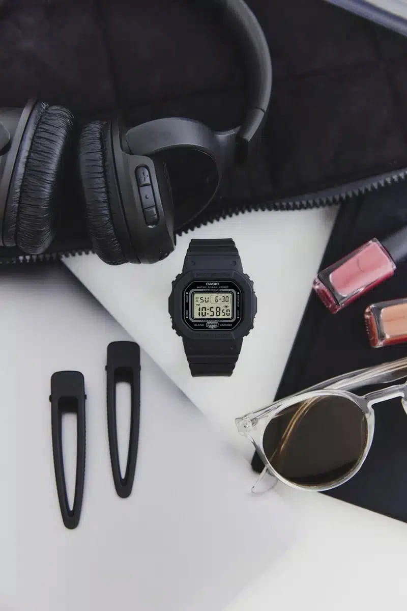 Японские женские часы-хронографХронографФункция позволяет измерять отрезки времени с особой точностью: часы, минуты, секунды. Верным признаком хронографа является наличие на циферблате 3 дополнительных окошек-счётчиков. Casio G-Shock GMD-S5600BA-1DR (GMD-S5600BA-1). Минеральное стеклоМинеральное стеклоМинеральное стекло представляет собой искусственно выращенный минерал кварца. Такое стекло отличается особой устойчивостью к повреждениям и царапинам. Уступает по некоторым качествам сапфировому стеклу. устойчивое к появлению царапин, обладающее высокой прозрачностью. Ударопрочный корпусУдаропрочный корпусМеханизм заключён в корпус, выполненный из современных материалов, устойчивых к ударам, механическим повреждениям и падению с высоты: инновационный пластик, карбон, нержавеющая сталь, титан. защищает механизм от ударов и вибрации. Светодиодная подсветкаСветодиодная подсветкаСветодиодная или LED-подсветка обеспечивает появление яркого холодного свечения за счёт LED-элементов - маленьких лампочек. Они потребляют минимальное количество энергии, чаще всего можно встретить 1 светодиод, в нижней части циферблата. освещает весь циферблат, после отпускания кнопки свечение продолжается еще некоторое время. Настраиваемое послесвечение 1,5 или 3сек. СекундомерСекундомерСекундоме́р — прибор, способный измерять интервалы времени с точностью до долей секунды.. ТаймерТаймерОтсчитывает секунды в обратном направлении в заданном интервале времени.. 5 ежедневных будильников. Почасовой сигнал времени. Вечный календарьВечный календарьКлассическое часовое усложнение, представляющее собой календарь, рассчитанный на несколько лет вперёд (стандартно – до 2099 года). Определяет текущую дату, день недели, месяц.. Класс водозащиты: 200 метров, позволит плавать, нырять и заниматься другими водными видами спорта. Ремешок из полимерного материала на стандартной застежке.
