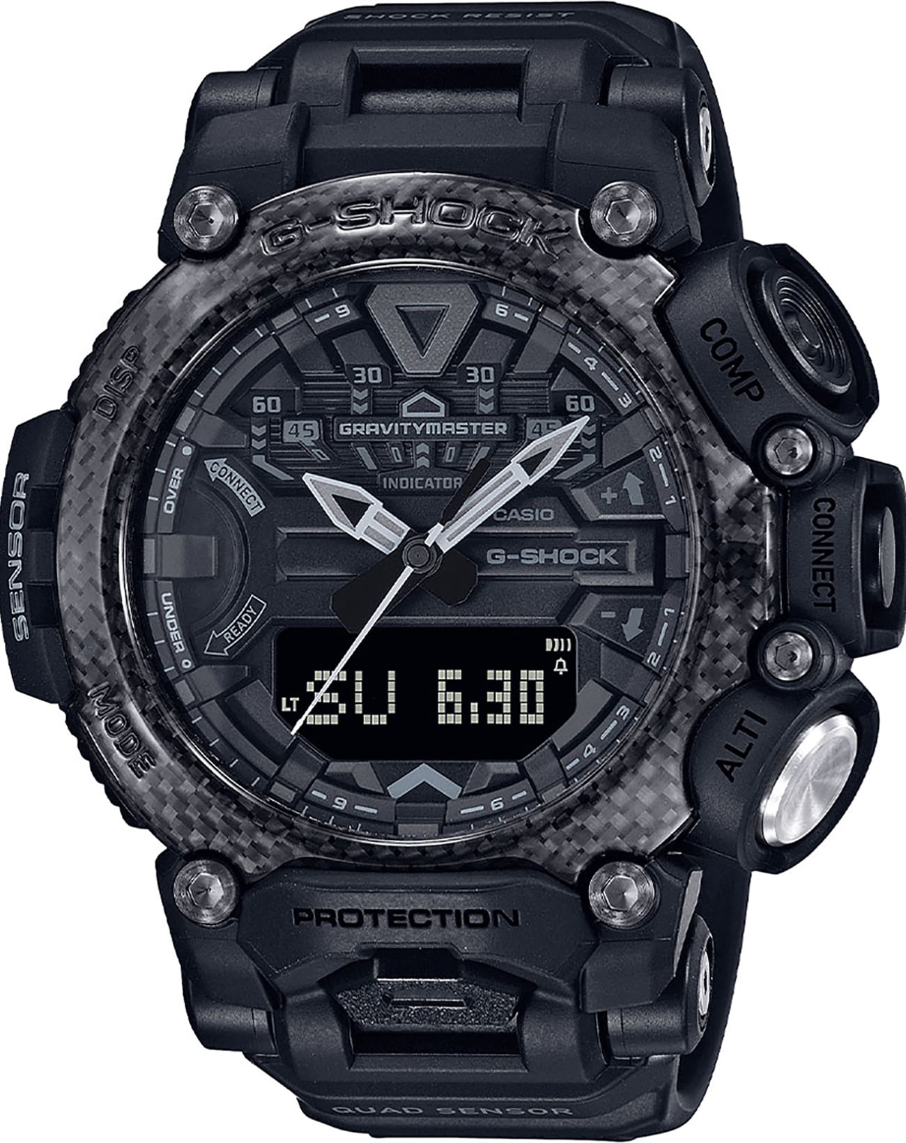 Наручные часы в тёмной расцветке помогут всегда находиться в центре внимания, они станут выигрышной деталью любого образа. Разработчики Casio выбрали для этой модели обновлённый противоударный корпусУдаропрочный корпусМеханизм заключён в корпус, выполненный из современных материалов, устойчивых к ударам, механическим повреждениям и падению с высоты: инновационный пластик, карбон, нержавеющая сталь, титан., реализовав технологию Carbon Core GuardCarbon Core Guard Новейшая структура корпуса, разработанная Casio. Полиуретановая пластина дополнительно усилена карбоновыми вставками, что придаёт специальную защиту от механических повреждений. Карбон отличается лёгкостью и прочностью.. Двойная подсветка - люминесцентнаяЛюминесцентное покрытиеПозволяет считывать показания времени в темноте. Производители наносят на стрелки, часовые индексы, безель или поверхность циферблата светонакопительный состав, дающий холодное свечение. и светодиодная Светодиодная подсветкаСветодиодная или LED-подсветка обеспечивает появление яркого холодного свечения за счёт LED-элементов - маленьких лампочек. Они потребляют минимальное количество энергии, чаще всего можно встретить 1 светодиод, в нижней части циферблата.. Ремешок из полимерного материала. БезельБезельВнешний ободок, закрепляющий стекло. В спортивных часах так называется поворотное кольцо с делениями на циферблате, выполняет роль таймера – замеряет отрезки времени на шкале. Неподвижный безель – элемент декора. Однонаправленно вращающийся безель на дайверских часах позволяет фиксировать моменты погружения и выныривания на поверхность. из карбона. Минеральное стекло. Индикатор состояния заряда батарейки. Функции: BluetoothBluetoothСовременная технология, позволяющая синхронизировать часы с телефоном и переносить данные. Часы с Bluetooth расширяют возможности вашего смартфона и делают его использование ещё более удобным., будильник, секундомер, таймер, мировое времяМировое время Полезное часовое усложнение, отображающее время в основных городах и известных областях по всему миру, оно связано с часовыми поясами, удобно для путешественников и бизнесменов. , автоматический календарь. Габариты: 63 x 54,1 x 18,3 мм.