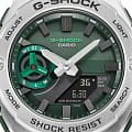 Японские мужские часы-хронографХронографФункция позволяет измерять отрезки времени с особой точностью: часы, минуты, секунды. Верным признаком хронографа является наличие на циферблате 3 дополнительных окошек-счётчиков. с минеральным стекломМинеральное стеклоМинеральное стекло представляет собой искусственно выращенный минерал кварца. Такое стекло отличается особой устойчивостью к повреждениям и царапинам. Уступает по некоторым качествам сапфировому стеклу. Casio G-Shock GST-B500AD-3A, кварцевый механизм с высокой точностью. Линейка GST-B500 объединяет в себе все самое необходимое, что нужно современным мужчинам. Питание от солнечной энергии Tough SolarTough SolarТехнология основана на подзарядке аккумулятора от источника солнечного света, специальная панель улавливает солнечные лучи и преобразует их в энергию для работы часов. Достаточно пары минут нахождения на солнце для функционирования часов в течении суток. солнечные батарейки большой мощности, индикатор заряда батареи. Функция автоматического сохранения энергии. Время работы аккумулятора без подзарядки приблизительно 7 месяцев, при включенной функции сохранения энергии приблизительно 18 месяцев. Механизм часов помещен в корпус из прочного материала, который надежно защищает от внешних воздействий, от ударов и вибрации. Carbon Core GuardCarbon Core Guard Новейшая структура корпуса, разработанная Casio. Полиуретановая пластина дополнительно усилена карбоновыми вставками, что придаёт специальную защиту от механических повреждений. Карбон отличается лёгкостью и прочностью. объединяет корпус и заднюю крышку в единый карбоновый моноблок. Ударопрочный корпусУдаропрочный корпусМеханизм заключён в корпус, выполненный из современных материалов, устойчивых к ударам, механическим повреждениям и падению с высоты: инновационный пластик, карбон, нержавеющая сталь, титан. из стали и полимерного материала защищает механизм от ударов и вибрации. Двойная светодиодная белая подсветка Super Illuminator с функцией Afterglow, одновременно подсвечивается аналоговый циферблат и цифровой дисплей. Светонакопительное покрытие NeobriteПодсветка NeobriteИспользование светонакопительных составов на основе сульфида цинка или алюмината стронция, яркий свет можно наблюдать на протяжении 6-10 часов после «зарядки» часов около источника света. обеспечивает длительное послесвечение в темноте даже после кратковременного нахождения на свету. Сплит-хронографСплит-хронографИспользуется для измерения продолжительности нескольких временных отрезков, начинающихся одновременно, а заканчивающихся в разное время.. ТаймерТаймерОтсчитывает секунды в обратном направлении в заданном интервале времени. обратного отсчета от 1 секунды до 1 часа. Мировое времяМировое время Полезное часовое усложнение, отображающее время в основных городах и известных областях по всему миру, оно связано с часовыми поясами, удобно для путешественников и бизнесменов. – 38 часовых поясов, всемирное координированное время (UTCUTCВсемирное кординационное время, не имеющее привязки к географическому положению Гринвича, основывается на атомном отсчёте времени. Регулировка времени осуществляется более точно, чем устаревшее GMT.