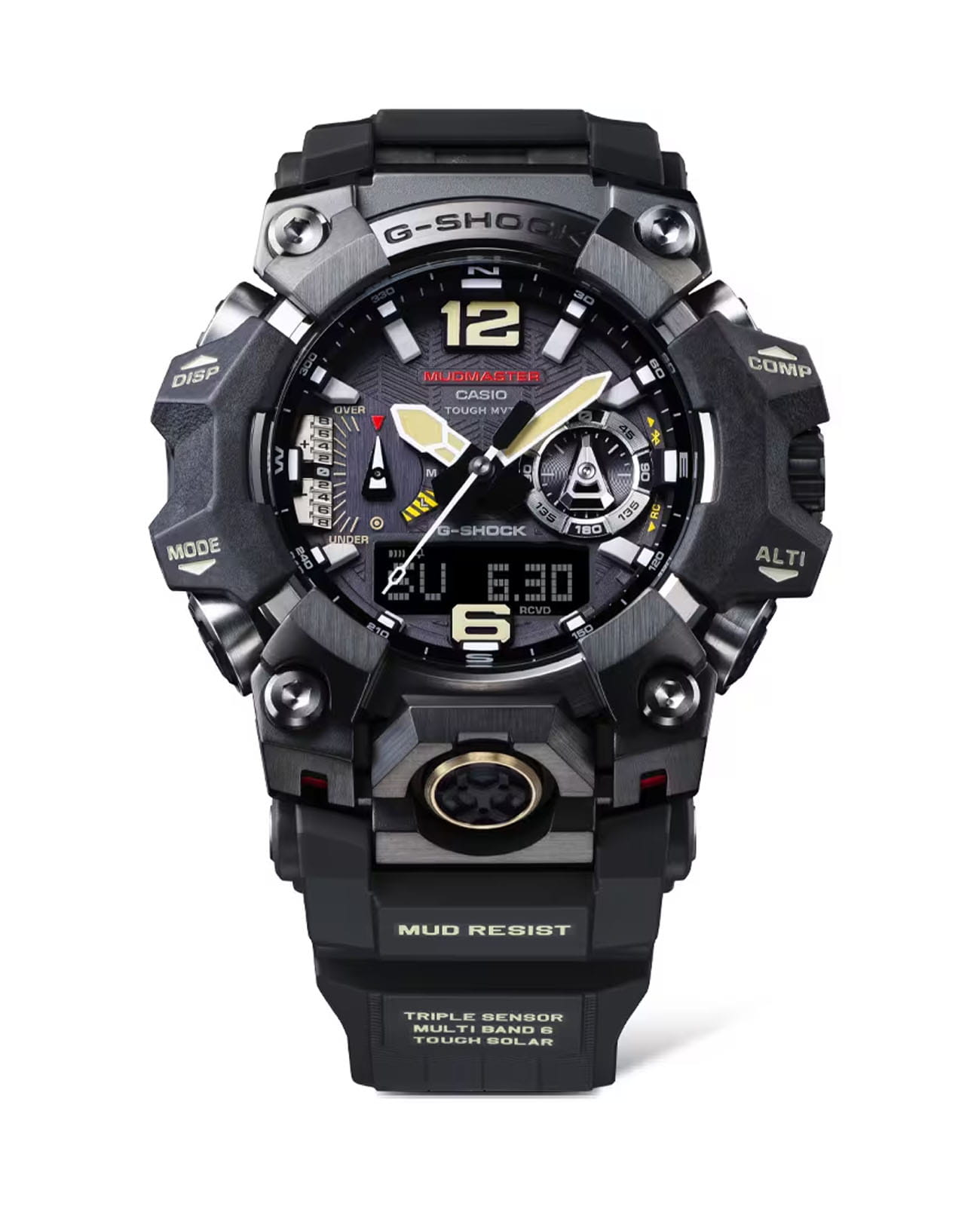 Спортивные японские мужские часы с секундомеромСекундомерСекундоме́р — прибор, способный измерять интервалы времени с точностью до долей секунды. и хронографомХронографФункция позволяет измерять отрезки времени с особой точностью: часы, минуты, секунды. Верным признаком хронографа является наличие на циферблате 3 дополнительных окошек-счётчиков. Casio G-Shock GWG-B1000-1A, кварцевый механизм с высокой точностью. Часы G-SHOCK Master из линейки G, разработанные для профессионалов, работающих в самых суровых условиях, оснащены еще более совершенной функциональностью. Питание от солнечной энергии Tough Solar - солнечные батарейки большой мощности, индикатор заряда батареи. Функция автоматического сохранения энергии. Время работы аккумулятора без подзарядки приблизительно 5 месяцев, при включенной функции сохранения энергии приблизительно 18 месяцев. Ударопрочный корпусУдаропрочный корпусМеханизм заключён в корпус, выполненный из современных материалов, устойчивых к ударам, механическим повреждениям и падению с высоты: инновационный пластик, карбон, нержавеющая сталь, титан. с DLC-покрытиемDLC-покрытиеDiamond like carbon - одно из лучших видов покрытия, представляющее собой углерод с алмазными свойствами. На поверхность материала наносятся распавшиеся молекулы углерода, превращающиеся в плёнку из алмазоподобных связей, которая перенимает твёрдость алмаза. защищает механизм от ударов и вибрации. СекундомерСекундомерСекундоме́р — прибор, способный измерять интервалы времени с точностью до долей секунды. с точностью показаний 1с и временем измерения 24ч. Мировое времяМировое время Полезное часовое усложнение, отображающее время в основных городах и известных областях по всему миру, оно связано с часовыми поясами, удобно для путешественников и бизнесменов. – 27 часовых поясов. Встроенный GPSGPSСистема спутниковой навигации. Часы оснащены приёмником GPS-сигнала, который получает необходимую информацию по GSM, GPRS, со спутников. Принимая сигнал, наручные часы могут установить точные показатели времени и даты, часовой пояс, сообщить местоположение своего владельца.