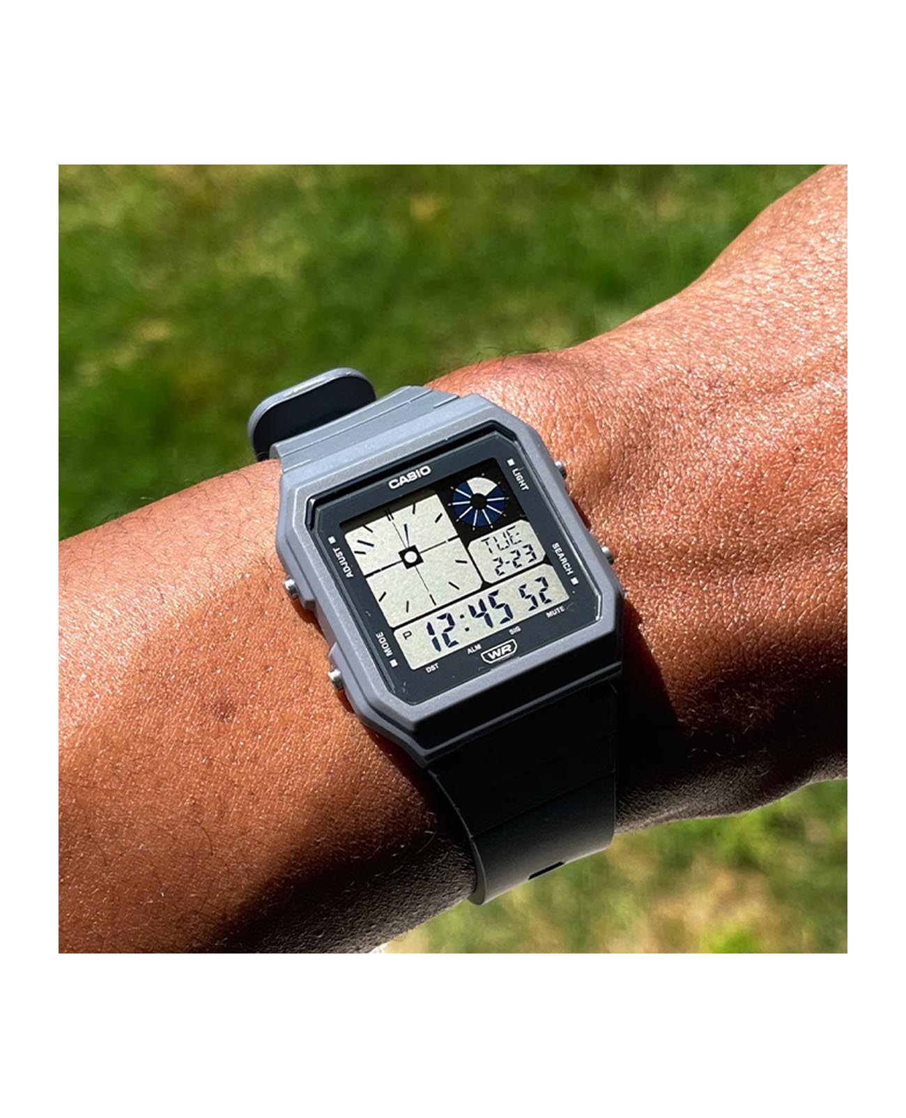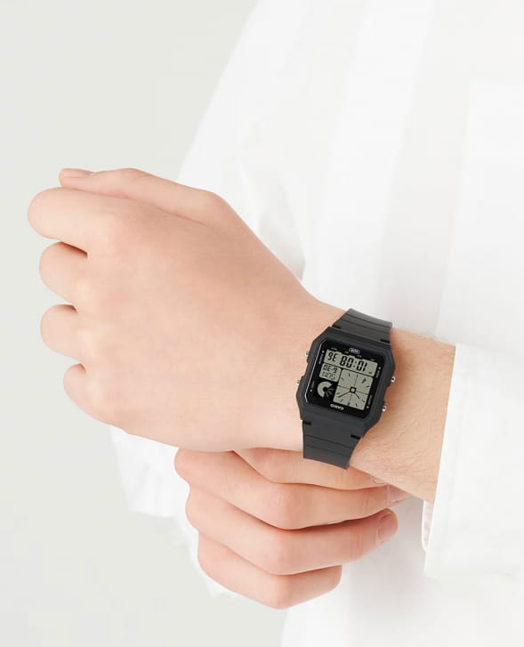 Японские мужские часы с секундомеромСекундомерСекундоме́р — прибор, способный измерять интервалы времени с точностью до долей секунды. Casio Digital LF-20W-1A, кварцевый механизм с высокой точностью. Электролюминесцентная подсветкаЭлектролюминесцентная подсветкаЭлектролюминесцентная панель устанавливается под ЖК-экраном часов, при нажатии кнопки электричество преобразуется в свет за счёт подачи напряжения на атомы фосфора, такой тип подсветки позволяет освещать весь циферблат.. Мировое времяМировое время Полезное часовое усложнение, отображающее время в основных городах и известных областях по всему миру, оно связано с часовыми поясами, удобно для путешественников и бизнесменов. : 31 часовая зона (48 городов). Одновременное отображение времени в 4 городах. ТаймерТаймерОтсчитывает секунды в обратном направлении в заданном интервале времени.. 5 ежедневных будильниковБудильникБуди́льник — часы, в заданный момент времени подающие звуковой, световой и/или в редких случаях другой сигнал.. Ежечасный сигнал. Автоматический календарь. Функция включения/выключения звука кнопок. Корпус выполнен из черного пластика. Класс водозащиты: 30 метров, позволит защитить корпус от случайных брызг или капель дождя. Ремешок из полимерного материала на стандартной застежке.