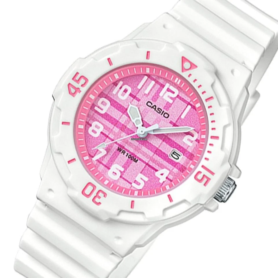 Женские японские наручные часы Casio Collection LRW-200H-4C. Кварцевый механизм с высокой точностью +/- 20 сек в месяц.Сочетают в себе стильный и яркий дизайн вкупе с практичностью и комфортом. Время отображается в в 12- и 24-часовом форматах. Вращающийся безельБезельВнешний ободок, закрепляющий стекло. В спортивных часах так называется поворотное кольцо с делениями на циферблате, выполняет роль таймера – замеряет отрезки времени на шкале. Неподвижный безель – элемент декора. Однонаправленно вращающийся безель на дайверских часах позволяет фиксировать моменты погружения и выныривания на поверхность.. Легкий вес в 25 грамм. Есть миниатюрный календарь. Водонепроницаемость 100 метров, позволит плавать, нырять и заниматься другими водными видами спорта.Стрелки с люминесцентным покрытиемЛюминесцентное покрытиеПозволяет считывать показания времени в темноте. Производители наносят на стрелки, часовые индексы, безель или поверхность циферблата светонакопительный состав, дающий холодное свечение..
