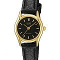 Casio LTP-1094Q-1A – элегантные женские часы с классическим дизайном и надёжной функциональностью. Корпус выполнен из нержавеющей стали с PVD-покрытиемPVDУльтратонкое покрытие наносится в технике вакуумного напыления, сочетает в себе нитрид титана особой прочности со слоем золота или оксида хрома. Несёт в себе декоративную или защитную функцию. в золотистом оттенке, что придаёт модели утончённый стиль. Чёрный циферблат защищён минеральным стекломМинеральное стеклоМинеральное стекло представляет собой искусственно выращенный минерал кварца. Такое стекло отличается особой устойчивостью к повреждениям и царапинам. Уступает по некоторым качествам сапфировому стеклу., устойчивым к царапинам и механическим повреждениям.