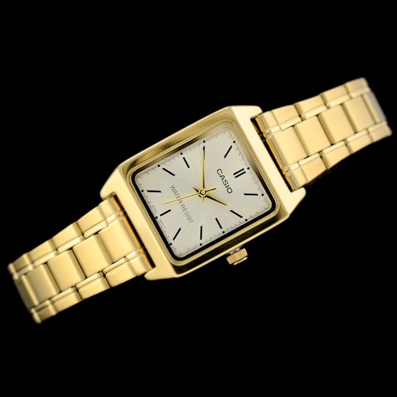 Японские женские часы LTP-V007G-9E из коллекции LTP изящно смотрятся на запястье, они привлекают классическим исполнением и правильной геометрией. Минеральное стеклоМинеральное стеклоМинеральное стекло представляет собой искусственно выращенный минерал кварца. Такое стекло отличается особой устойчивостью к повреждениям и царапинам. Уступает по некоторым качествам сапфировому стеклу..Минималистичная модель станет отличным решением для любого случая: на работу, переговоры с деловыми партнёрами, прогулку с друзьями или праздничный вечер. Отсутствуют лишние детали, что позволяет часам быть актуальными на долгие годы. Корпус выполнен из стали с IP-покрытиемIP-покрытиеМетод ионного напыления. Демонстрирует повышенную устойчивость к истиранию, окислению и химическим веществам. Под воздействием высокого давления и температуры около 1500°C молекулы металла надёжно соединяются с частицами корпуса часов., отличающейся долговечностью и устойчивостью к повреждениям и царапинам. Модель комплектуется надёжным механизмом, точность хода которого составляет +/- 20 сек/мес. Стальной браслет IP-покрытиемIP-покрытиеМетод ионного напыления. Демонстрирует повышенную устойчивость к истиранию, окислению и химическим веществам. Под воздействием высокого давления и температуры около 1500°C молекулы металла надёжно соединяются с частицами корпуса часов. на раскладной застёжкеРаскладная застёжкаТакой тип застёжки используется только на браслетах из металла. Она никогда не раскрывается полностью, происходит разделение на 2 и более частей. Раскладывающая застёжка снизит вероятность потери часов к минимуму..