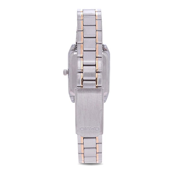 Японские женские часы LTP-V007SG-9E с минеральным стекломМинеральное стеклоМинеральное стекло представляет собой искусственно выращенный минерал кварца. Такое стекло отличается особой устойчивостью к повреждениям и царапинам. Уступает по некоторым качествам сапфировому стеклу. из коллекции LTP изящно смотрятся на запястье, они привлекают классическим исполнением и правильной геометрией. Минималистичная модель станет отличным решением для любого случая: на работу, переговоры с деловыми партнёрами, прогулку с друзьями или праздничный вечер. Отсутствуют лишние детали, что позволяет часам быть актуальными на долгие годы. Корпус выполнен из стали, отличающейся долговечностью и устойчивостью к повреждениям и царапинам. Модель комплектуется надёжным механизмом, точность хода которого составляет +/- 20 сек/мес. Браслет с частичным IP-покрытиемIP-покрытиеМетод ионного напыления. Демонстрирует повышенную устойчивость к истиранию, окислению и химическим веществам. Под воздействием высокого давления и температуры около 1500°C молекулы металла надёжно соединяются с частицами корпуса часов. и с раскладывающейся застежкой.