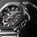 Casio представляет первую модель из линейки G-SHOCK 2100, получившую название MR-G. Модель MRGB2100 представляет собой образец ювелирного мастерства, корпус и безельБезельВнешний ободок, закрепляющий стекло. В спортивных часах так называется поворотное кольцо с делениями на циферблате, выполняет роль таймера – замеряет отрезки времени на шкале. Неподвижный безель – элемент декора. Однонаправленно вращающийся безель на дайверских часах позволяет фиксировать моменты погружения и выныривания на поверхность. которой изготовлены из сверхтвердого титанового сплава Ti64. Верхняя часть безеля изготовлена из КОБАРИОНА - сплава, который в четыре раза прочнее чистого титана и по блеску сравним с платиной. Браслет изготовлен из другого специального титанового сплава, DAT55G, который одновременно является чрезвычайно прочным и хорошо поддается обработке. Один только безель состоит из 27 различных компонентов, каждый из которых индивидуально отполирован для получения потрясающей детализированной текстуры. Ультрасовременная конструкция Multi-Guard включает в себя буферы между частями многокомпонентного безеля и корпуса, обеспечивающие превосходную амортизацию безеля, и защищает специальный модуль MR-G с помощью позолоченной фиксирующей пластины.