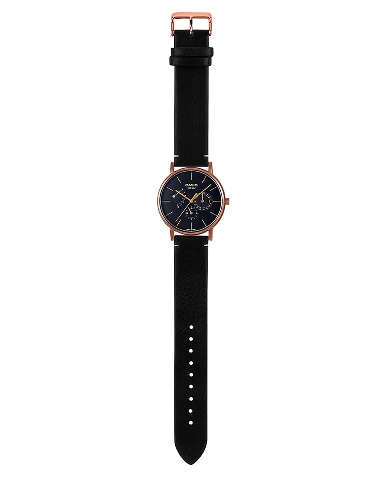 Японские мужские часы с минеральным стекломМинеральное стеклоМинеральное стекло представляет собой искусственно выращенный минерал кварца. Такое стекло отличается особой устойчивостью к повреждениям и царапинам. Уступает по некоторым качествам сапфировому стеклу. Casio Collection MTP-E320RL-1E, кварцевый механизм с высокой точностью. Корпус часов изготовлен из стали с IP-покрытиемIP-покрытиеМетод ионного напыления. Демонстрирует повышенную устойчивость к истиранию, окислению и химическим веществам. Под воздействием высокого давления и температуры около 1500°C молекулы металла надёжно соединяются с частицами корпуса часов.. Число и день недели вынесены на отдельные циферблаты. Метки в виде штрихов. Батарейка рассчитана на 3 года. Класс водозащиты: 50 метров, позволит защитить корпус от случайных брызг или капель дождя. Кожаный ремешок на стандартной застёжке.