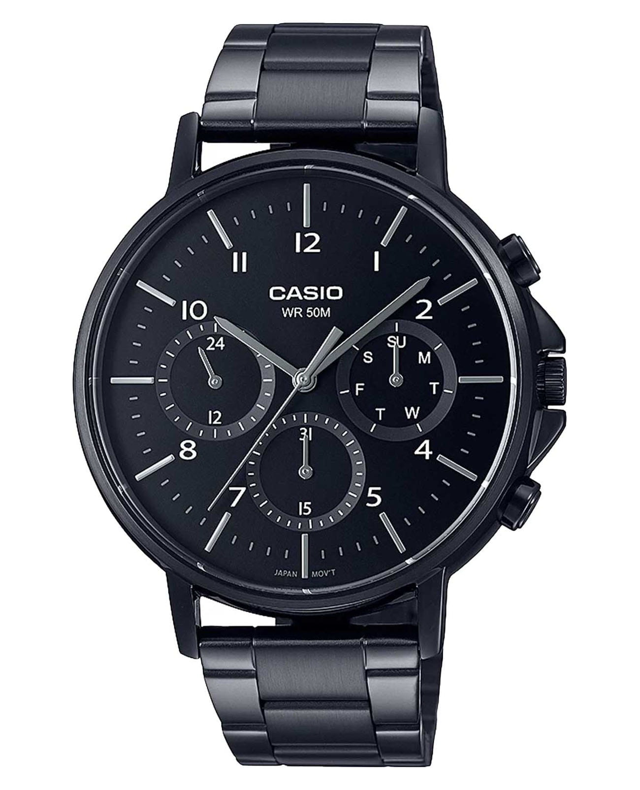 Японские мужские часы с минеральным стекломМинеральное стеклоМинеральное стекло представляет собой искусственно выращенный минерал кварца. Такое стекло отличается особой устойчивостью к повреждениям и царапинам. Уступает по некоторым качествам сапфировому стеклу. Casio Collection MTP-E321B-1A, кварцевый механизм с высокой точностью. Корпус часов изготовлен из стали с IP-покрытиемIP-покрытиеМетод ионного напыления. Демонстрирует повышенную устойчивость к истиранию, окислению и химическим веществам. Под воздействием высокого давления и температуры около 1500°C молекулы металла надёжно соединяются с частицами корпуса часов.. Число и день недели вынесены на отдельные циферблаты. Метки в виде штрихов и арабских цифр. Заводная головка с защитой. Батарейка рассчитана на 3 года. Класс водозащиты: 50 метров, позволит защитить корпус от случайных брызг или капель дождя. Стальной браслет с IP-покрытиемIP-покрытиеМетод ионного напыления. Демонстрирует повышенную устойчивость к истиранию, окислению и химическим веществам. Под воздействием высокого давления и температуры около 1500°C молекулы металла надёжно соединяются с частицами корпуса часов. на раскладной застёжкеРаскладная застёжкаТакой тип застёжки используется только на браслетах из металла. Она никогда не раскрывается полностью, происходит разделение на 2 и более частей. Раскладывающая застёжка снизит вероятность потери часов к минимуму..