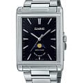 Японские мужские часы с минеральным стекломМинеральное стеклоМинеральное стекло представляет собой искусственно выращенный минерал кварца. Такое стекло отличается особой устойчивостью к повреждениям и царапинам. Уступает по некоторым качествам сапфировому стеклу. Casio Collection MTP-M105D-1A, кварцевый механизм с высокой точностью. Корпус часов изготовлен из стали. Циферблат с метками в виде штрихов выполнен по технологии Sunray (солнечные лучи). Отображение фаз Луны. Заводная головка с защитой. Батарейка рассчитана на 3 года. Задняя крышка с винтовым фиксатором. Класс водозащиты: 50 метров, позволит защитить корпус от случайных брызг или капель дождя. Стальной браслет на раскладной застёжкеРаскладная застёжкаТакой тип застёжки используется только на браслетах из металла. Она никогда не раскрывается полностью, происходит разделение на 2 и более частей. Раскладывающая застёжка снизит вероятность потери часов к минимуму..
