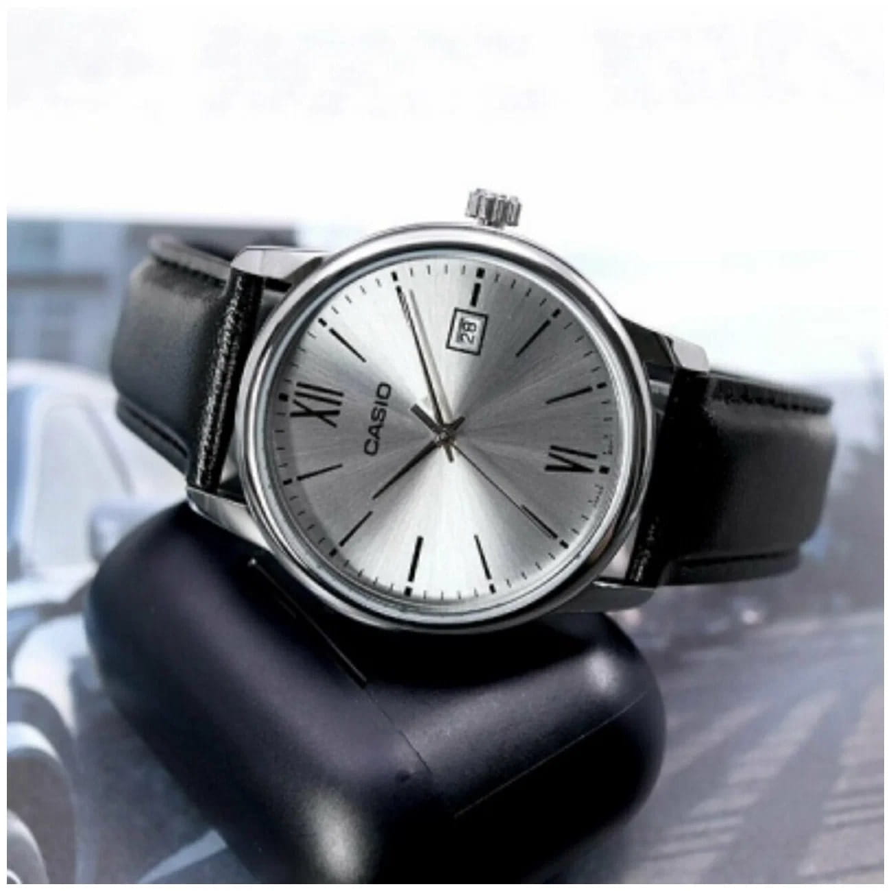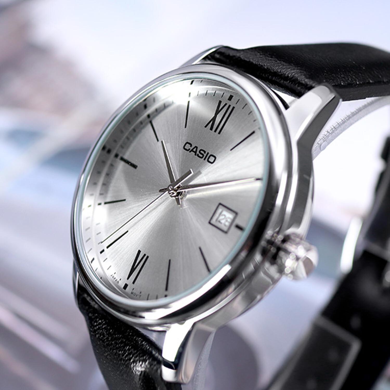 Японские мужские часы с минеральным стекломМинеральное стеклоМинеральное стекло представляет собой искусственно выращенный минерал кварца. Такое стекло отличается особой устойчивостью к повреждениям и царапинам. Уступает по некоторым качествам сапфировому стеклу. Casio Collection MTP-V002L-1B3, кварцевый механизм с высокой точностью. Корпус часов изготовлен из стали. Циферблат выполнен по технологии Sunray (солнечные лучи). Метки в виде штрихов и двух римских цифр. Батарейка рассчитана на 3 года. Ремешок с классической застежкой. Окошко даты находится в положении 3 часа.