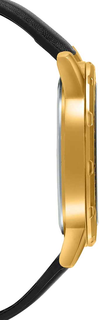 Кварцевый механизм с высокой точностью. Минеральное стеклоМинеральное стеклоМинеральное стекло представляет собой искусственно выращенный минерал кварца. Такое стекло отличается особой устойчивостью к повреждениям и царапинам. Уступает по некоторым качествам сапфировому стеклу. устойчивое к появлению царапин, обладающее высокой прозрачностью. Стрелки с люминесцентным покрытиемЛюминесцентное покрытиеПозволяет считывать показания времени в темноте. Производители наносят на стрелки, часовые индексы, безель или поверхность циферблата светонакопительный состав, дающий холодное свечение.. Класс водозащиты: 20 метров, позволит защитить корпус от случайных брызг или капель дождя. Корпус часов изготовлен из нержавеющей стали с PVD-покрытиемPVDУльтратонкое покрытие наносится в технике вакуумного напыления, сочетает в себе нитрид титана особой прочности со слоем золота или оксида хрома. Несёт в себе декоративную или защитную функцию.. Кожаный ремешок с классической застежкой.