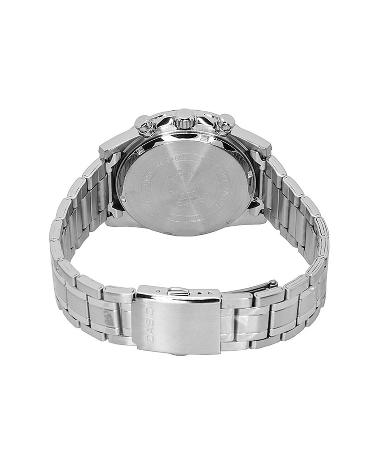Японские мужские часы-хронографХронографФункция позволяет измерять отрезки времени с особой точностью: часы, минуты, секунды. Верным признаком хронографа является наличие на циферблате 3 дополнительных окошек-счётчиков. с секундомеромСекундомерСекундоме́р — прибор, способный измерять интервалы времени с точностью до долей секунды. Casio Collection MTP-W500D-1A, кварцевый механизм с высокой точностью. Класс водозащиты: 50 метров, позволит защитить корпус от случайных брызг или капель дождя. Корпус и браслет часов изготовлены из стали. Удобное отображение времени домашнего часового пояса и мирового времениМировое время Полезное часовое усложнение, отображающее время в основных городах и известных областях по всему миру, оно связано с часовыми поясами, удобно для путешественников и бизнесменов. (24 города - 24 зоны) позволяет ориентироваться при путешествиях. Браслет с раскладной застёжкойРаскладная застёжкаТакой тип застёжки используется только на браслетах из металла. Она никогда не раскрывается полностью, происходит разделение на 2 и более частей. Раскладывающая застёжка снизит вероятность потери часов к минимуму.. БудильникБудильникБуди́льник — часы, в заданный момент времени подающие звуковой, световой и/или в редких случаях другой сигнал./ежечасный сигнал. Минеральное стеклоМинеральное стеклоМинеральное стекло представляет собой искусственно выращенный минерал кварца. Такое стекло отличается особой устойчивостью к повреждениям и царапинам. Уступает по некоторым качествам сапфировому стеклу. устойчивое к мелким механическим повреждениям. Центральные часовая, минутная и секундная стрелки. Индикатор низкого заряда батареи. Синий циферблат с часовыми индексами в виде штрихов и цифр. Стрелки и метки с люминесцентным покрытиемЛюминесцентное покрытиеПозволяет считывать показания времени в темноте. Производители наносят на стрелки, часовые индексы, безель или поверхность циферблата светонакопительный состав, дающий холодное свечение..