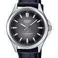 Мужские кварцевые часы Casio Collection — это современный и практичный аксессуар с питанием от солнечной энергии. Корпус размером 41,7 мм и толщиной 9,5 мм выполнен из нержавеющей стали. Циферблат чёрного цвета оформлен штрихами и стрелками. Циферблат защищён сапфировым стекломСапфировое стеклоПрочный и надёжный материал из кристалла сапфира синтетического происхождения, характеризующийся особой твёрдостью и устойчивостью к царапинам и повреждениям. с антибликовым покрытиемАнтибликовое покрытиеСлой оксида металла в 0,13-0,3 микрон, благодаря которому стекло часов не бликует и не отражает свет. Антибликовое покрытие уменьшает отражение света в 10 раз, обеспечивая отличную читаемость показателей циферблата.. Механизм — японский кварцевый калибр Miyota с центральной секундной стрелкой. Часы оснащены кожанным ремешко на стандартной пряжке. Заводная головка с защитой повышает надёжность. Водонепроницаемость 50 м позволяет использовать часы при мытье рук или в дождь. Идеальный выбор для тех, кто ценит японское качество и универсальный дизайн.