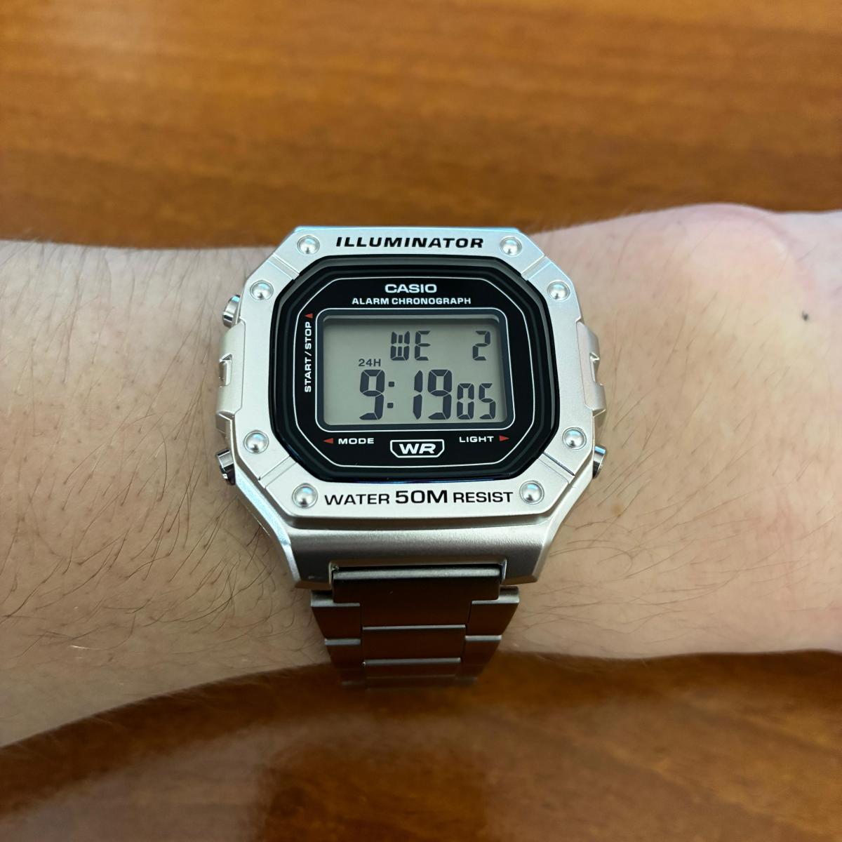 Японские часы с хронографом и светодиодом Casio Collection W-218HD-1AVDF (W-218HD-1A), кварцевый механизм с высокой точностью. Класс водозащиты: 50 метров, позволит защитить корпус от случайных брызг или капель дождя. Корпус часов изготовлен из пластика, серебристого цвета.