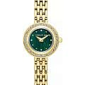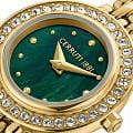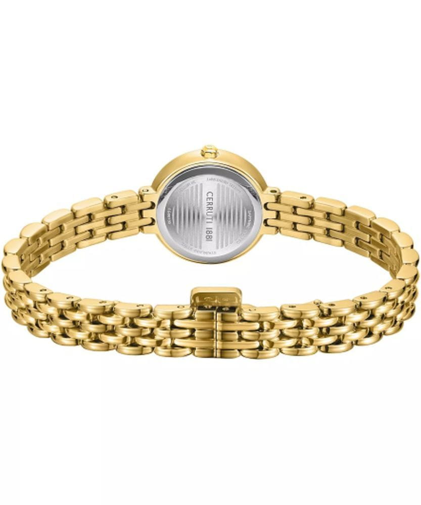 Cerruti 1881 CIWLG0073003 — изысканные женские часы, созданные в лучших традициях итальянской элегантности. Круглый корпус из нержавеющей стали с благородным золотым IP-покрытиемIP-покрытиеМетод ионного напыления. Демонстрирует повышенную устойчивость к истиранию, окислению и химическим веществам. Под воздействием высокого давления и температуры около 1500°C молекулы металла надёжно соединяются с частицами корпуса часов. и сияющим безелемБезельВнешний ободок, закрепляющий стекло. В спортивных часах так называется поворотное кольцо с делениями на циферблате, выполняет роль таймера – замеряет отрезки времени на шкале. Неподвижный безель – элемент декора. Однонаправленно вращающийся безель на дайверских часах позволяет фиксировать моменты погружения и выныривания на поверхность., украшенным кристаллами, придаёт модели утончённый и праздничный вид. Глубокий зелёный циферблат с солнечным переливом оформлен лаконично и стильно: миниатюрные метки в виде кристаллов подчёркивают ювелирный характер аксессуара. Прочное минеральное стеклоМинеральное стеклоМинеральное стекло представляет собой искусственно выращенный минерал кварца. Такое стекло отличается особой устойчивостью к повреждениям и царапинам. Уступает по некоторым качествам сапфировому стеклу. защищает поверхность от царапин, а металлический браслет с IP-покрытиемIP-покрытиеМетод ионного напыления. Демонстрирует повышенную устойчивость к истиранию, окислению и химическим веществам. Под воздействием высокого давления и температуры около 1500°C молекулы металла надёжно соединяются с частицами корпуса часов. полированными звеньями оснащён застёжкой «бабочка»Застёжка "бабочка"Такой вид застёжки дополняется предохранителями, помогающими избежать случайного раскрытия браслета. Обладают изящным исполнением. , обеспечивающей комфортное прилегание и надёжную фиксацию. Cerruti 1881 — это воплощение женственности и роскоши, идеально подходящее для тех, кто ценит утончённый стиль и блеск итальянской моды.