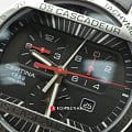 ХронографХронографФункция позволяет измерять отрезки времени с особой точностью: часы, минуты, секунды. Верным признаком хронографа является наличие на циферблате 3 дополнительных окошек-счётчиков. в спортивном стиле имеет циферблат с красными акцентами. Аксессуар оснащён функцией секундомера, тахиметраТахиметрРазмеченная шкала, располагается на ободке или безеле часов. Тахиметр позволяет рассчитать скорость на определённом участке пути, расстояние измеряется в километрах или милях., отображает текущую дату. Швейцарский кварцевый механизм ETA 251.262 отличается высокой точностью хода. Ремешок выполнен из натуральной телячьей кожи.