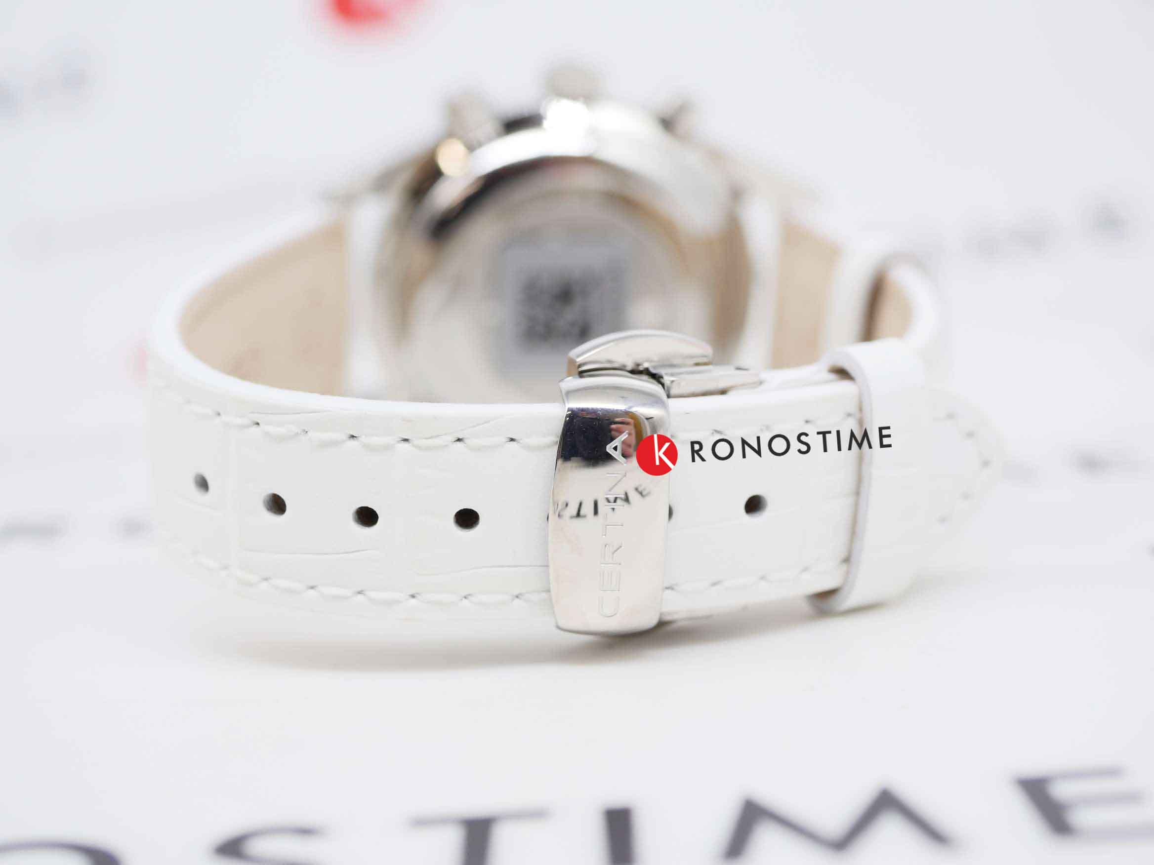 Женские швейцарские часы Certina DS-8 Lady Chronograph C033.234.36.048.01 из коллекции DS-8 – идеальное дополнение образа. Высокая точность хода швейцарского кварцевого калибра ETA G15.212 AA Precidrive™Precidrive™Инновационный кварцевый механизм Certina. Часы, оснащённые этим швейцарским калибром, приравниваются к точности к сертифицированным хронометрам, точность хода составляет +/-10 секунд в год. отмечена сертификатом COSCСертификат COSCОфициальный сертификат, подтверждающий то, что часы ходят с особо высокой точностью. Для получения документа часы подвергаются тестовым испытаниям, разработанным швейцарским институтом тестирования хронометров COSC. Допустимая норма для механических часов -4/+6 секунд в день, для кварцевых моделей +/- 0,07 секунд в день.. Сапфировое стеклоСапфировое стеклоПрочный и надёжный материал из кристалла сапфира синтетического происхождения, характеризующийся особой твёрдостью и устойчивостью к царапинам и повреждениям. с покрытием «антиблик». ХронографХронографФункция позволяет измерять отрезки времени с особой точностью: часы, минуты, секунды. Верным признаком хронографа является наличие на циферблате 3 дополнительных окошек-счётчиков., секундомер, дата, EOLEOLПредставляет собой систему, уведомляющую владельца часов о необходимости замены элемента питания. За 2 недели до полного разряда батарейки секундная стрелка перестаёт ходить чётко и начинает перепрыгивать на 3-4 деления.. Концепция Двойной Надёжности DSDS ConceptDouble Security Concept, обозначает двойную надёжность и безупречную точность часов Certina. Двойная система защиты подразумевает обеспечение максимальной устойчивости к ударам и высоких показателей водонепроницаемости.. Белый ремешок из натуральной кожи. Производство и сборка: Швейцария.