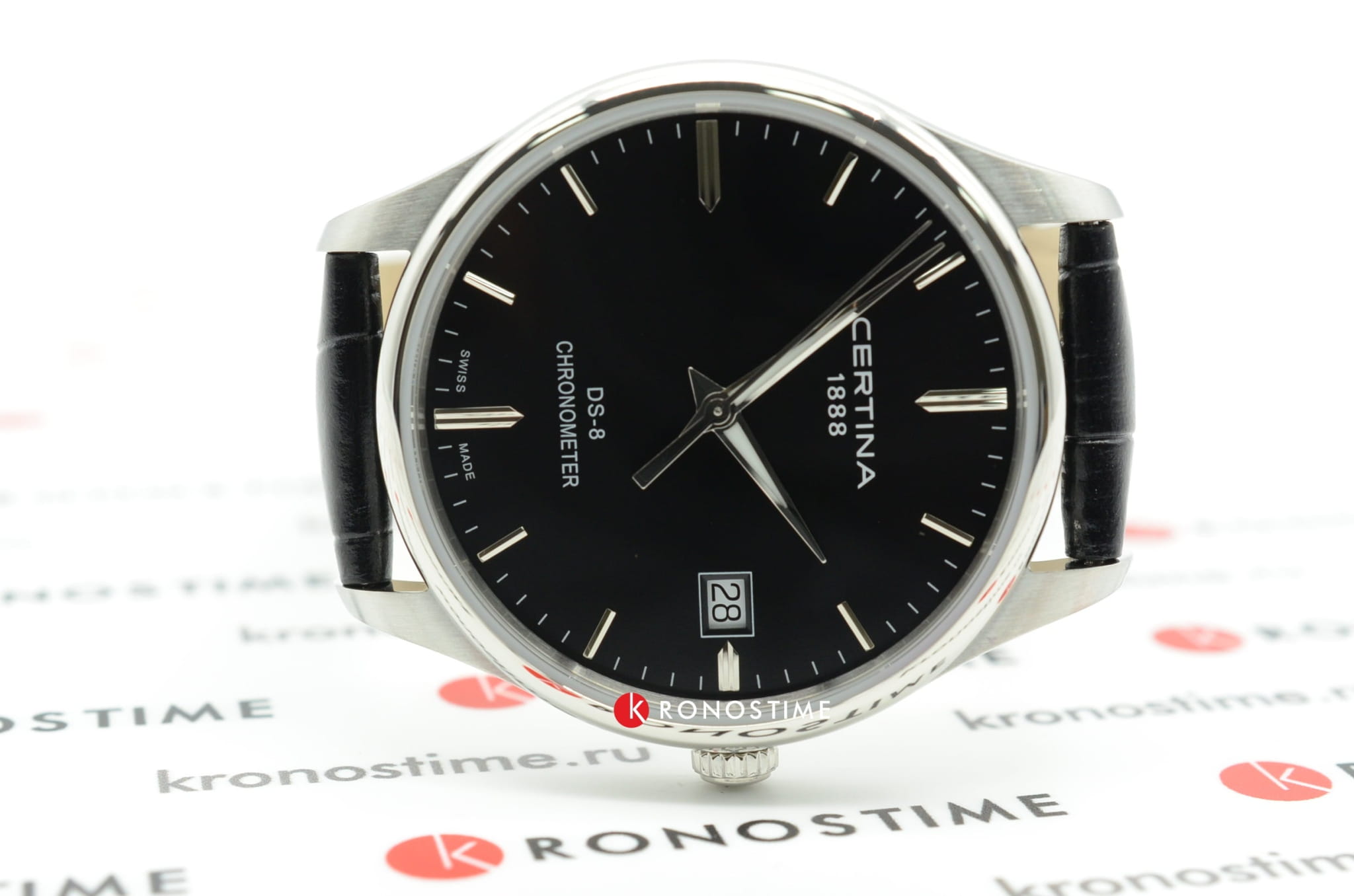 Стильный аксессуар в минималистичном оформлении охарактеризует вас как человека, который действительно разбирается в часах. Модель отличается повышенной точностью хода, это подтверждено официальным сертификатом хронометра COSCСертификат COSCОфициальный сертификат, подтверждающий то, что часы ходят с особо высокой точностью. Для получения документа часы подвергаются тестовым испытаниям, разработанным швейцарским институтом тестирования хронометров COSC. Допустимая норма для механических часов -4/+6 секунд в день, для кварцевых моделей +/- 0,07 секунд в день.. Часы обладают ударопрочным корпусомУдаропрочный корпусМеханизм заключён в корпус, выполненный из современных материалов, устойчивых к ударам, механическим повреждениям и падению с высоты: инновационный пластик, карбон, нержавеющая сталь, титан. и водонепроницаемостью до 10 бар - такие безупречные характеристики появились благодаря фирменной концепции DS ConceptDS ConceptDouble Security Concept, обозначает двойную надёжность и безупречную точность часов Certina. Двойная система защиты подразумевает обеспечение максимальной устойчивости к ударам и высоких показателей водонепроницаемости.. Швейцарский кварцевый механизм ETA F07.412 Precidrive™Precidrive™Инновационный кварцевый механизм Certina. Часы, оснащённые этим швейцарским калибром, приравниваются к точности к сертифицированным хронометрам, точность хода составляет +/-10 секунд в год.. Стекло из сапфира с антибликовым покрытием. Корпус из нержавеющей стали 316L. Чёрный ремешок из натуральной кожи. Индикация числа, функция EOLEOLПредставляет собой систему, уведомляющую владельца часов о необходимости замены элемента питания. За 2 недели до полного разряда батарейки секундная стрелка перестаёт ходить чётко и начинает перепрыгивать на 3-4 деления.. Диаметр корпуса: 40,2 мм.