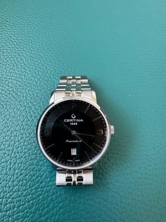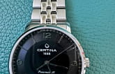 Чёрный минималистичный циферблат выдержан в строгом и сдержанном стиле. Привлекательно смотрится стальной браслет с рядами звеньев различного размера. Часы с автоматической системой завода оснащены пружинным калибром ETA Powermatic 80Powermatic 80Эксклюзивный калибр от швейцарской компании ETA с увеличенным запасом хода до 80 часов за счёт удлинённой заводной пружины. Характеризуется улучшенной системой спуска со сниженным трением., имеющим с 80-часовой запас хода. Прозрачная задняя крышка. Надёжный корпус из антикоррозионной стали 316L. Концепция DS ConceptDS ConceptDouble Security Concept, обозначает двойную надёжность и безупречную точность часов Certina. Двойная система защиты подразумевает обеспечение максимальной устойчивости к ударам и высоких показателей водонепроницаемости.. Сапфировое стекло. Водонепроницаемость 10 бар. . Апертура даты. Диаметр корпуса: 39 мм.