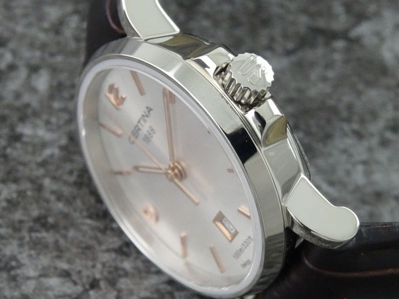 Женские швейцарские часы с сапфировым стекломСапфировое стеклоПрочный и надёжный материал из кристалла сапфира синтетического происхождения, характеризующийся особой твёрдостью и устойчивостью к царапинам и повреждениям. Certina DS Caimano C017.210.16.037.01 привлекает внимание окружающих приятным сочетанием простоты и кокетства. DS Caimano. Водонепроницаемые женские часы. Круглый стальной корпус. Циферблат выполнен по технологии Sunray (солнечные лучи). Узкие заостренные прямоугольные стрелки в стиле Baton. Метки в виде штрихов, 3, 6 и 12 часовые метки в виде арабских цифр.
